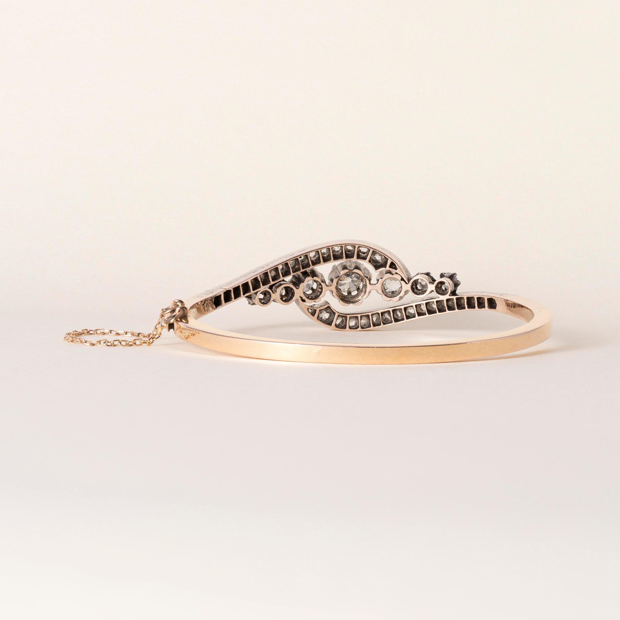 Antique French Napoléon III 2.50 Carats Diamond Cuff Bangle Rose Gold & Silver