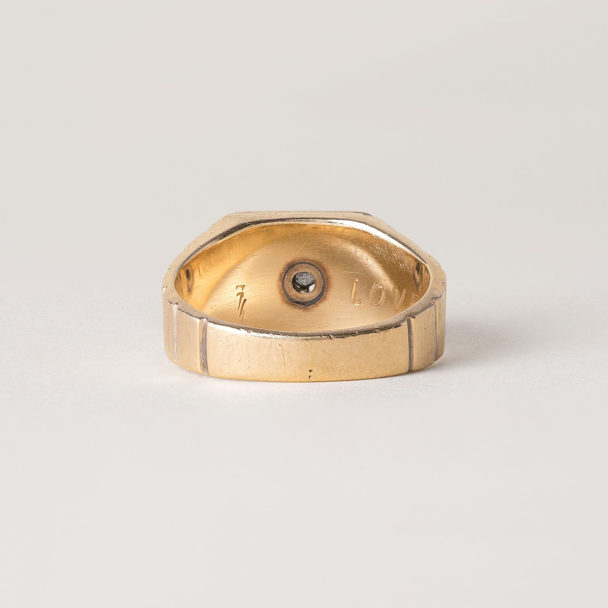 Vintage Modernist Diamond Solitaire Ring Brushed 14K Yellow Gold