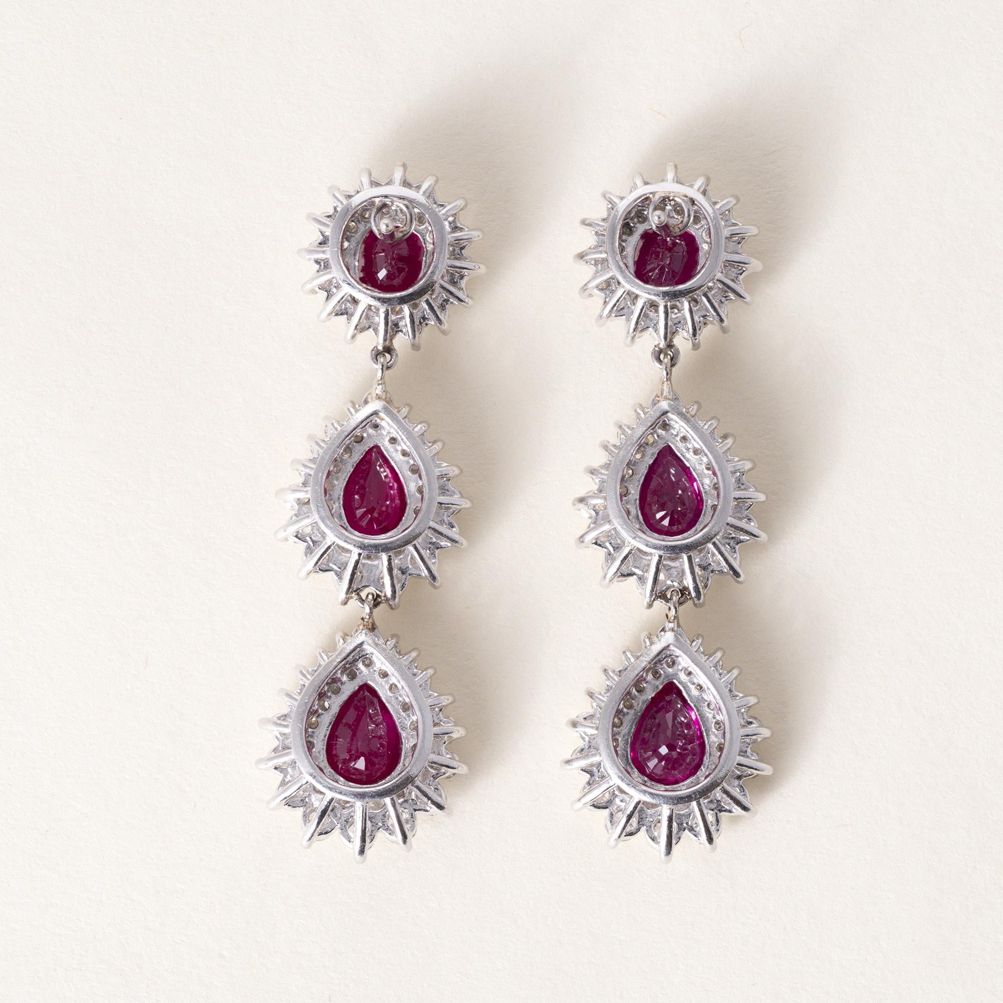 These are a stunning pair of ruby and diamond dangle earrings set in platinum