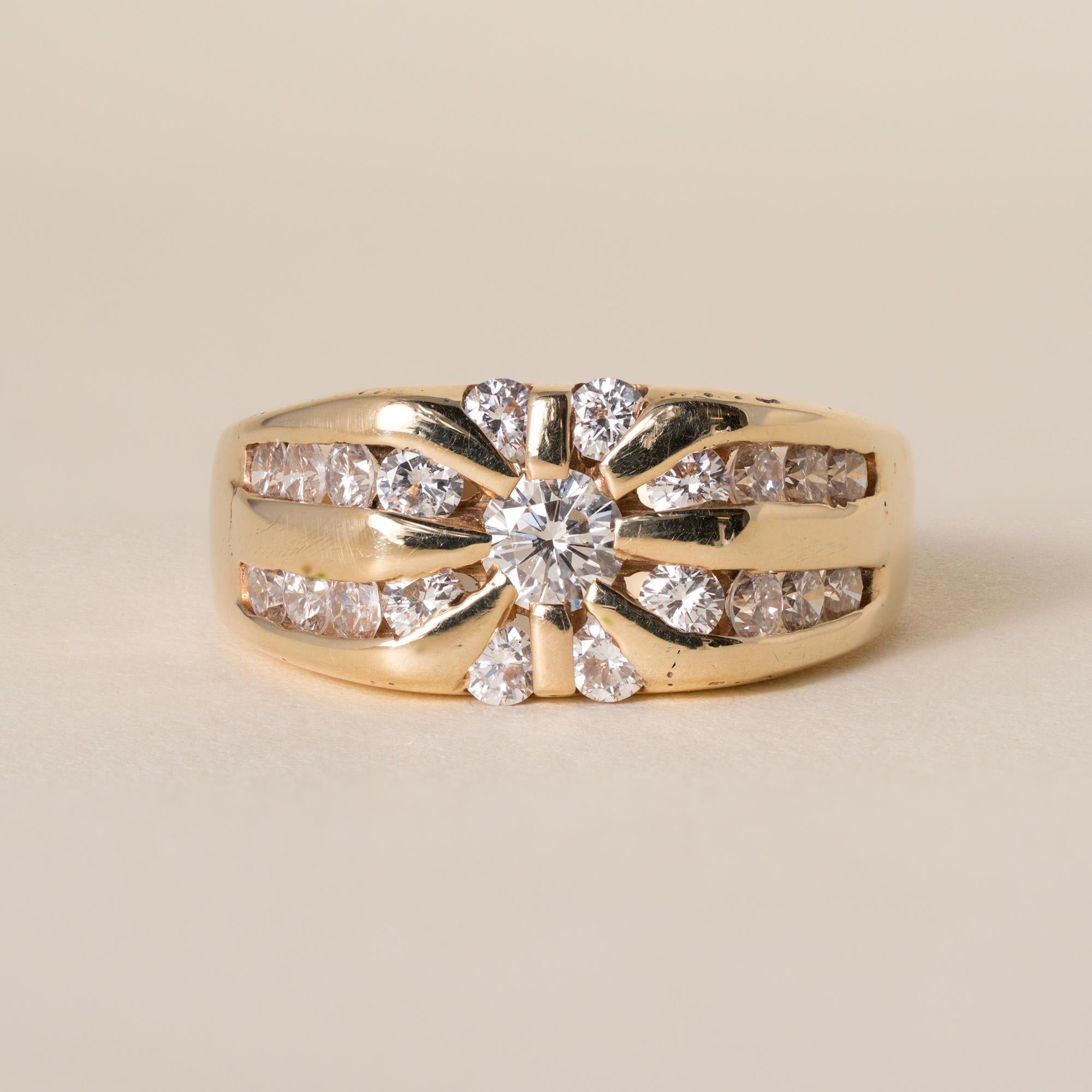 Vintage Starburst 14K Gold 1.45 Carats Diamond Channel Set Ring