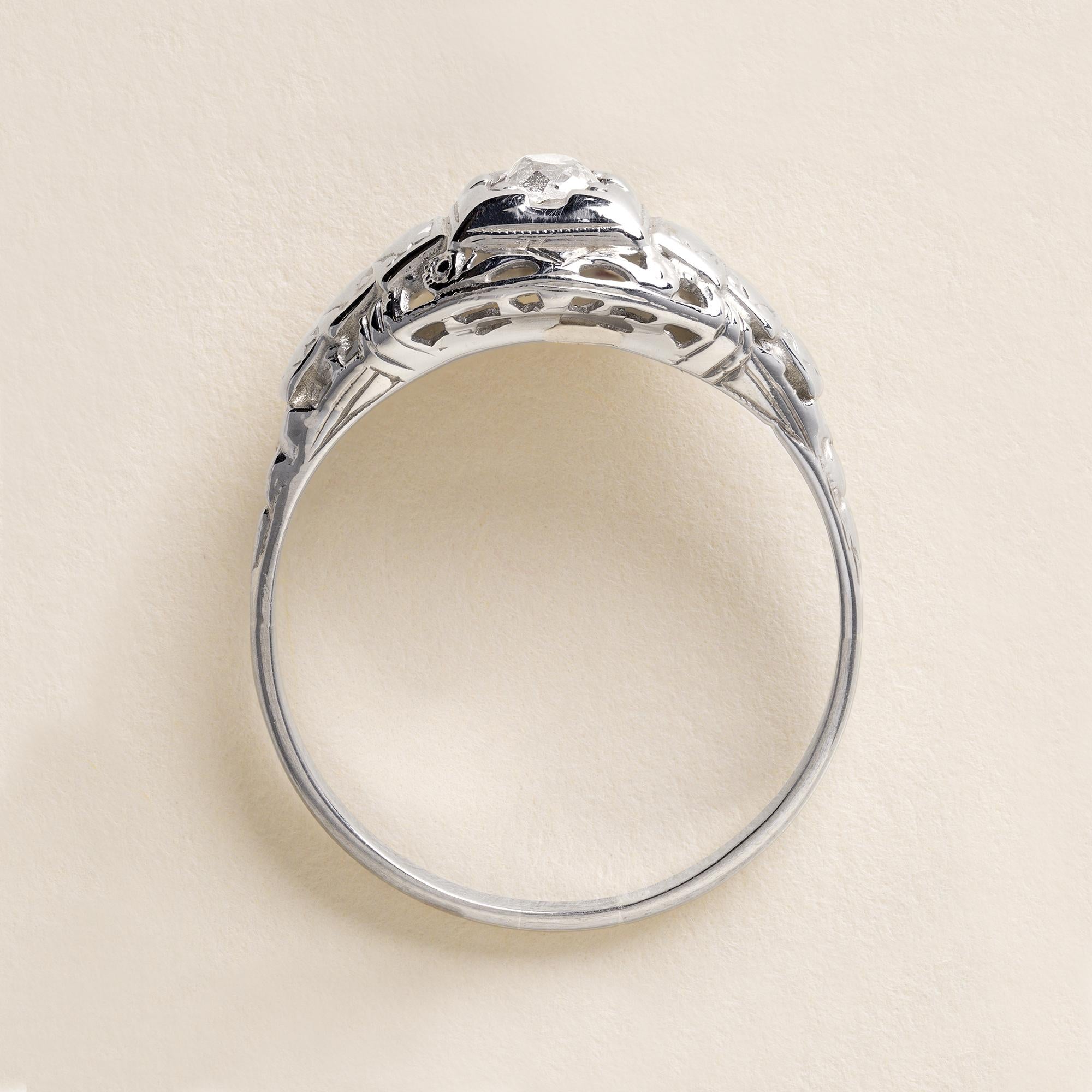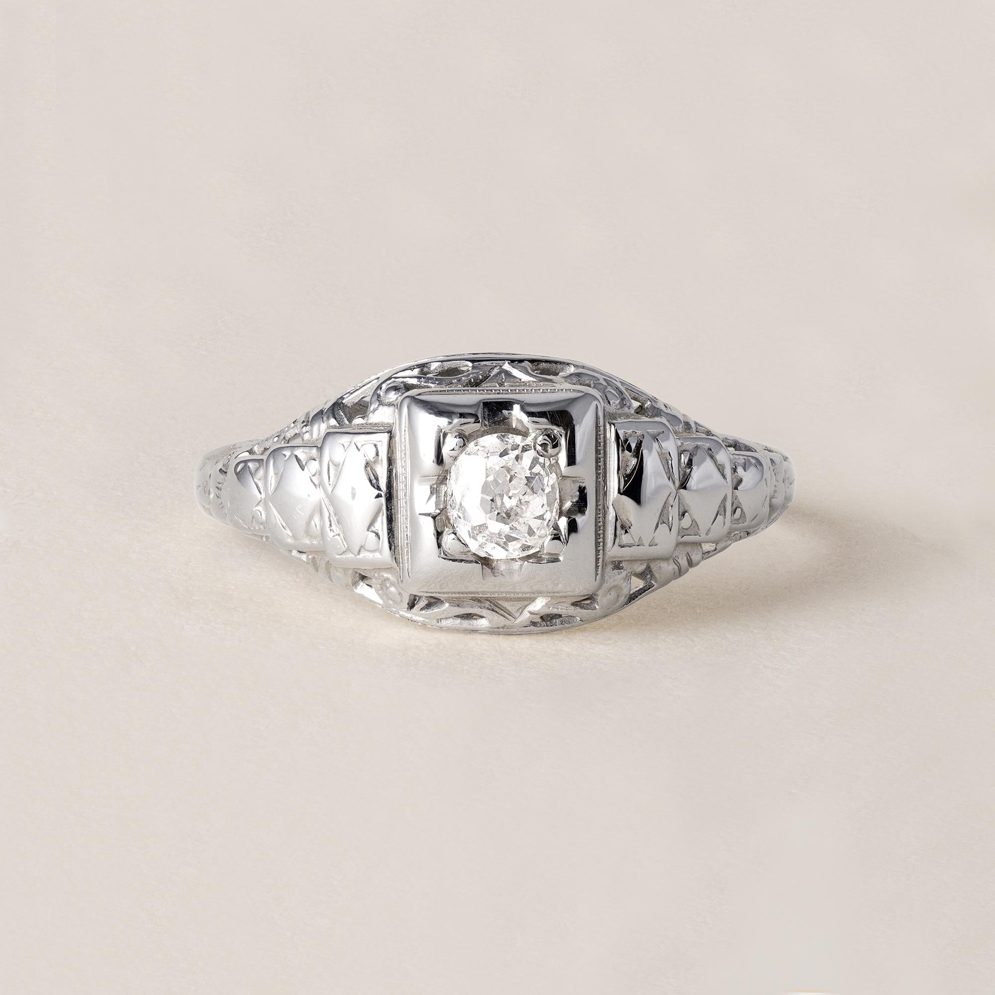 Art Deco 0.25 Carat Old Mine Cut Diamond Solitaire 14K White Gold