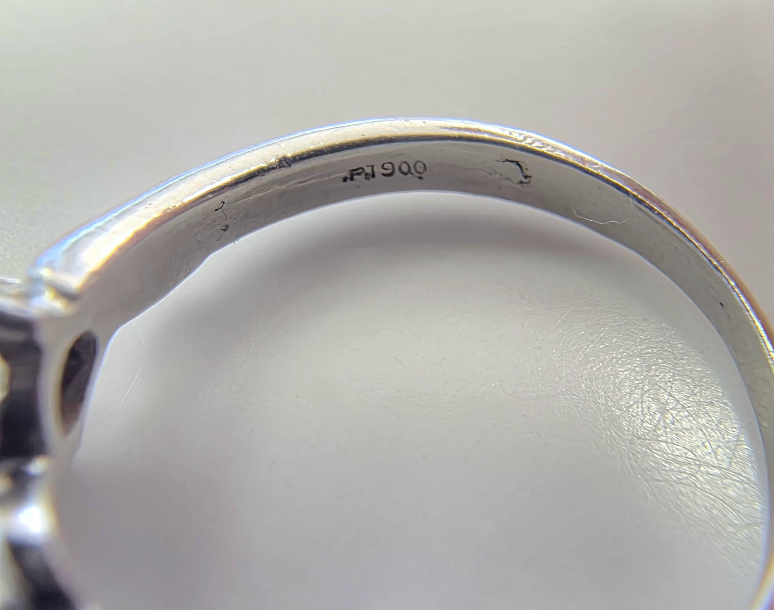 This is a vintage round brilliant diamonds ring set in platinum.