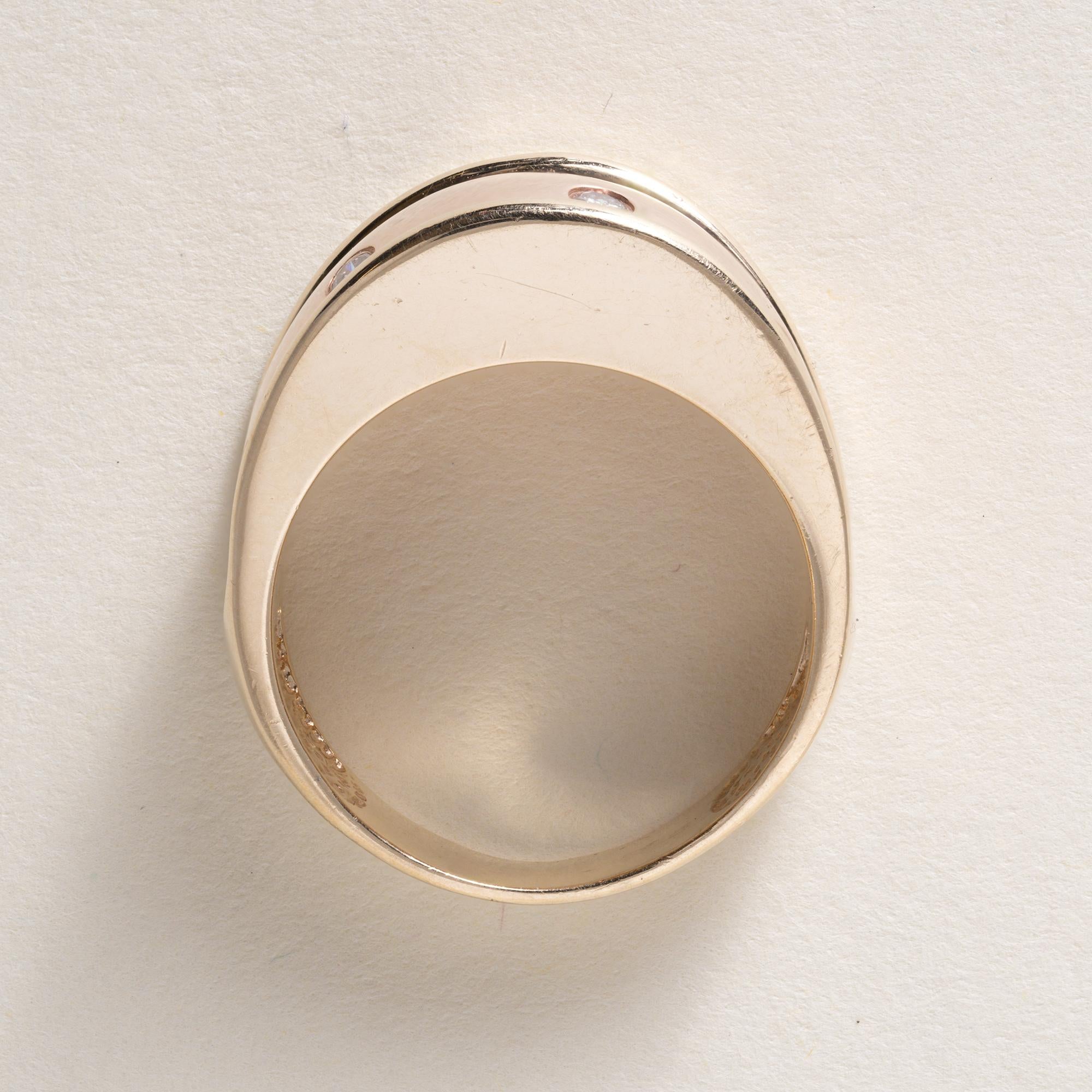 Vintage 14K Rose Gold Flush Diamond Wide Gold Ring Band