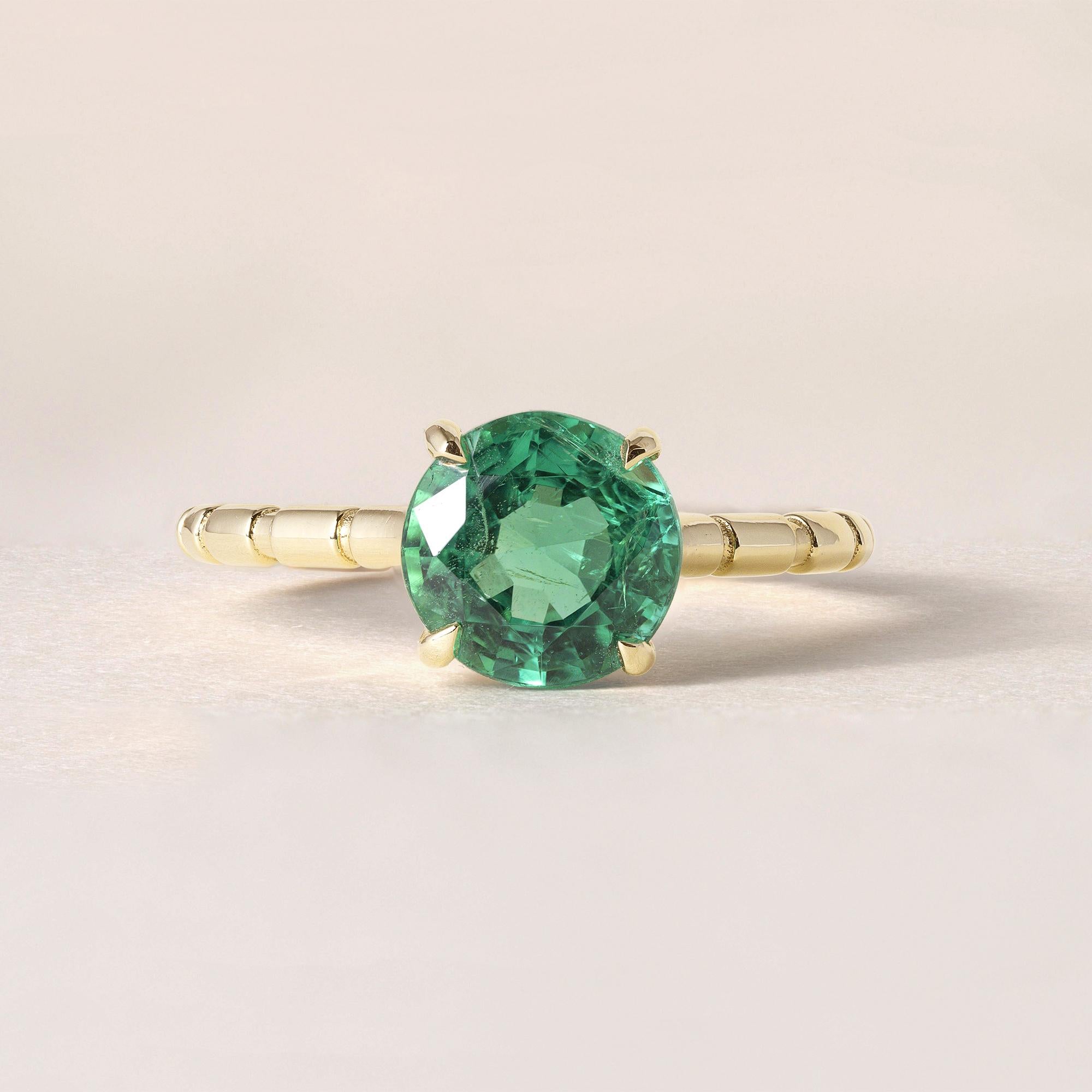 18K Gold 1.67 Carat Emerald Round Solitaire Ring