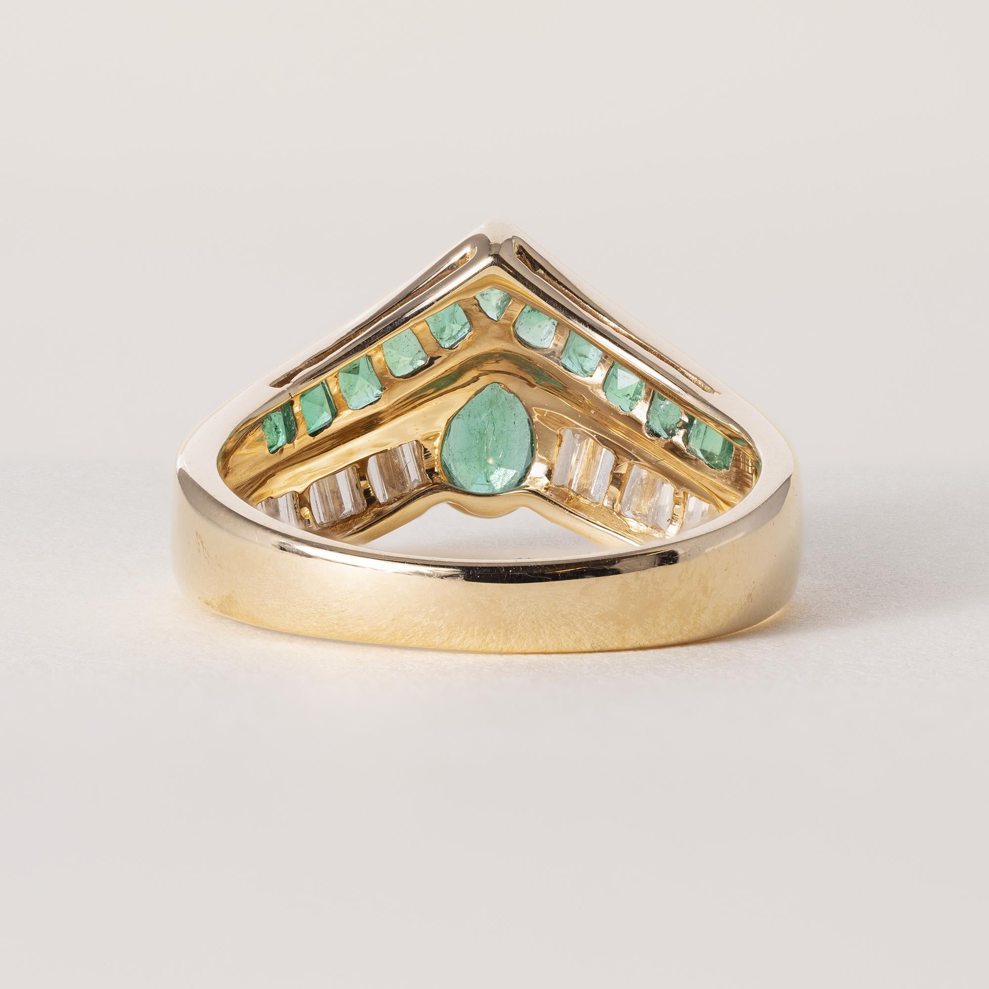 18K Gold Emerald Pear Shape and Diamond Channel Set Ring Band