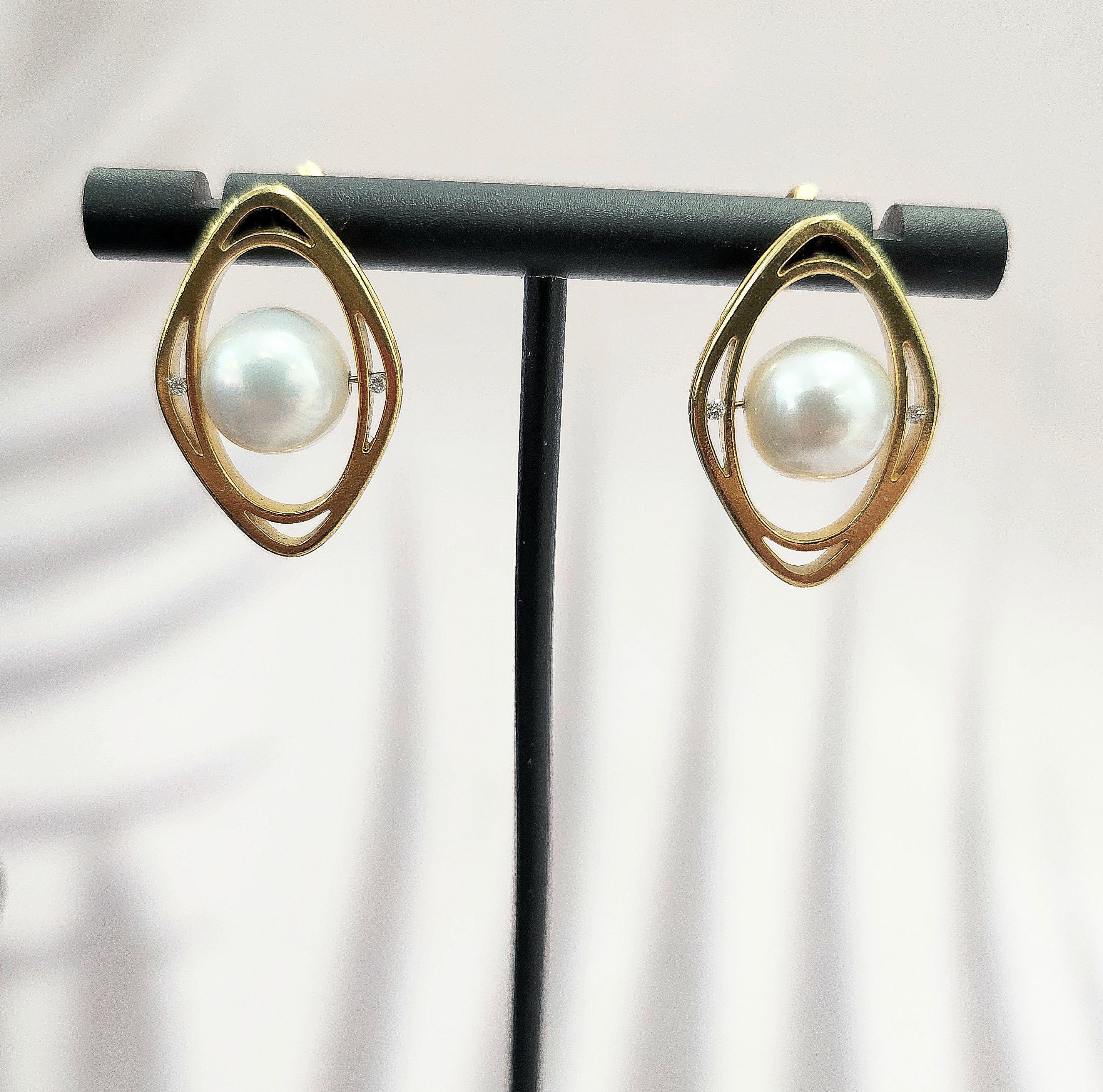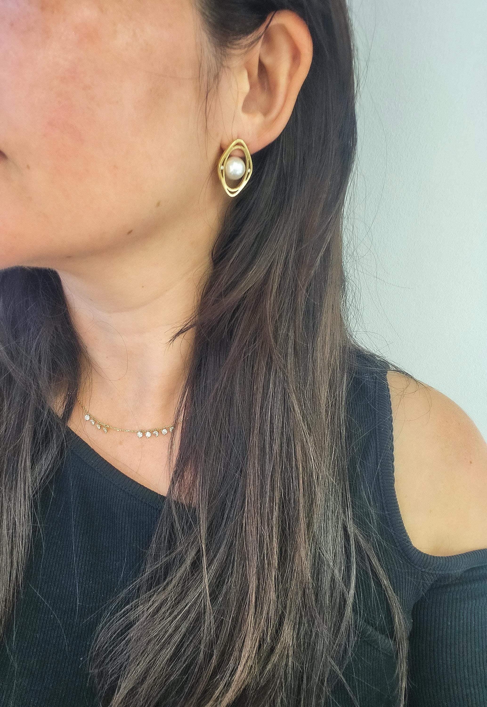 18K Gold Pearl & Diamond Stud Earrings by Scott Keating – Contemporary Fine Jewe