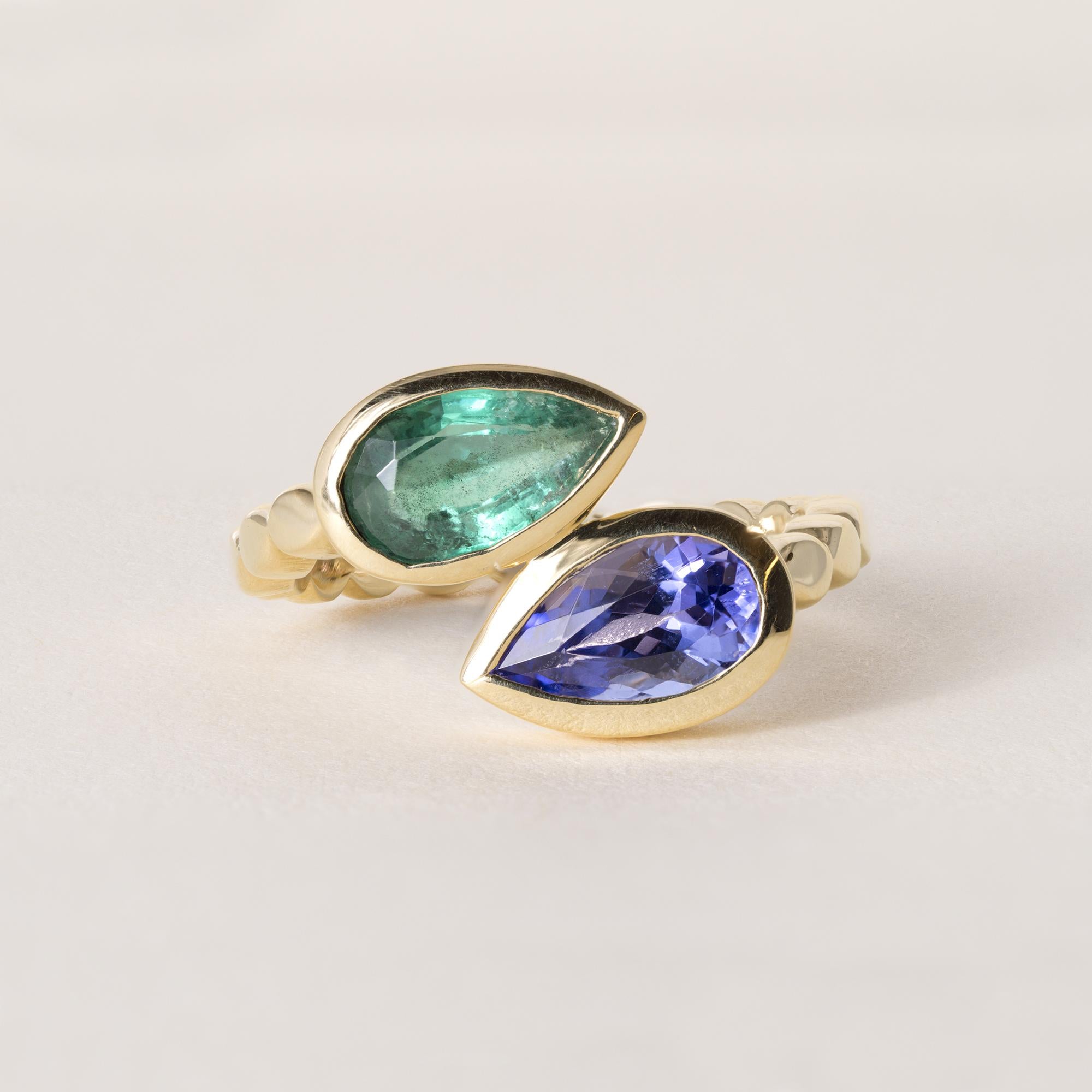 18K Gold Toi et Moi Emerald and Sapphire Pear Shape Ring