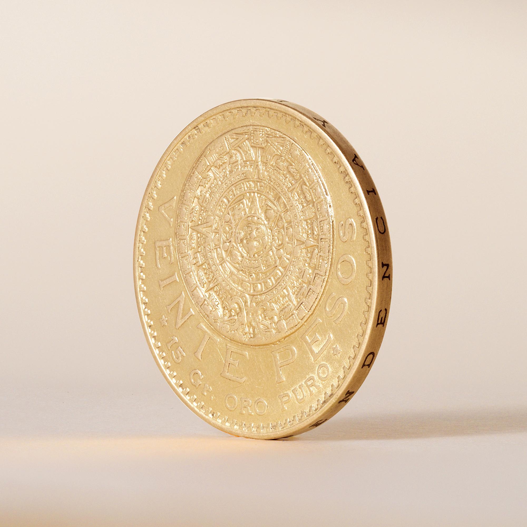 24K Pure Gold Mexico 1919 20 Pesos Aztec Calendar Coin