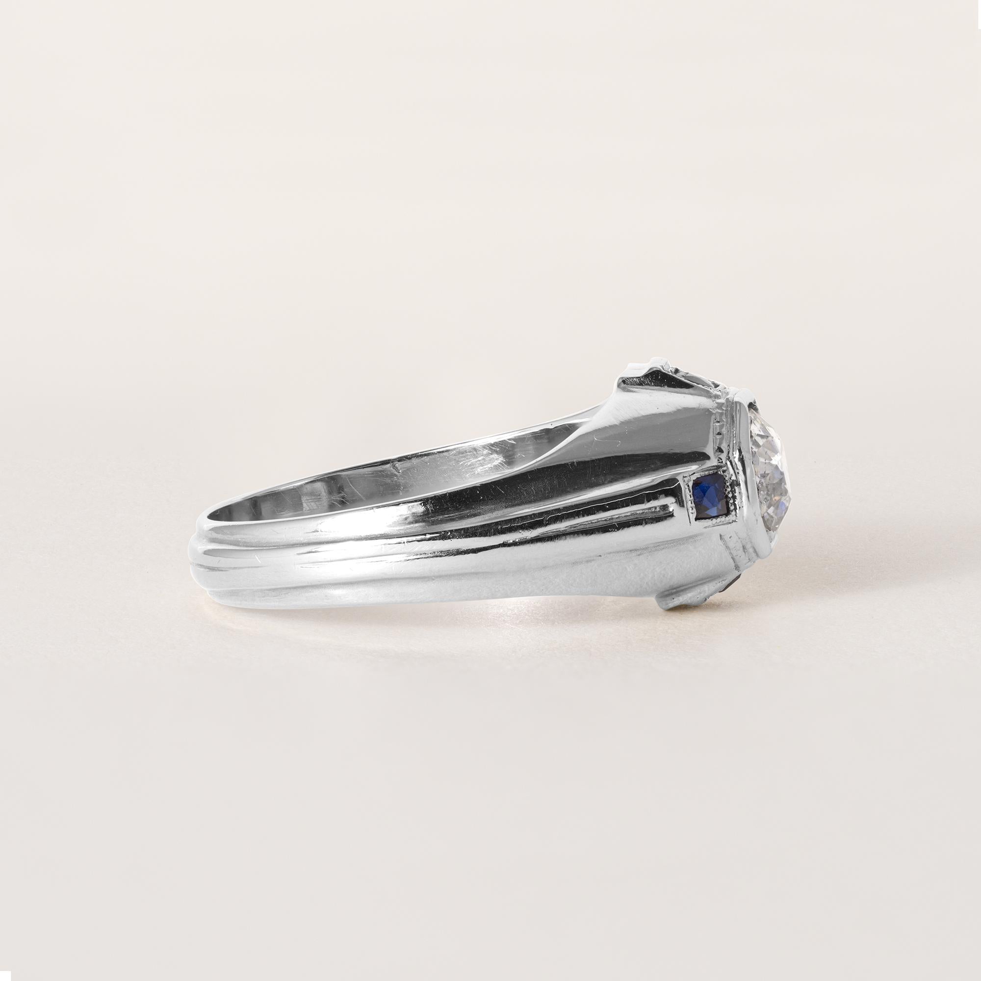Art Deco 20K Gold Old European Cut and Sapphire Diamond Ring