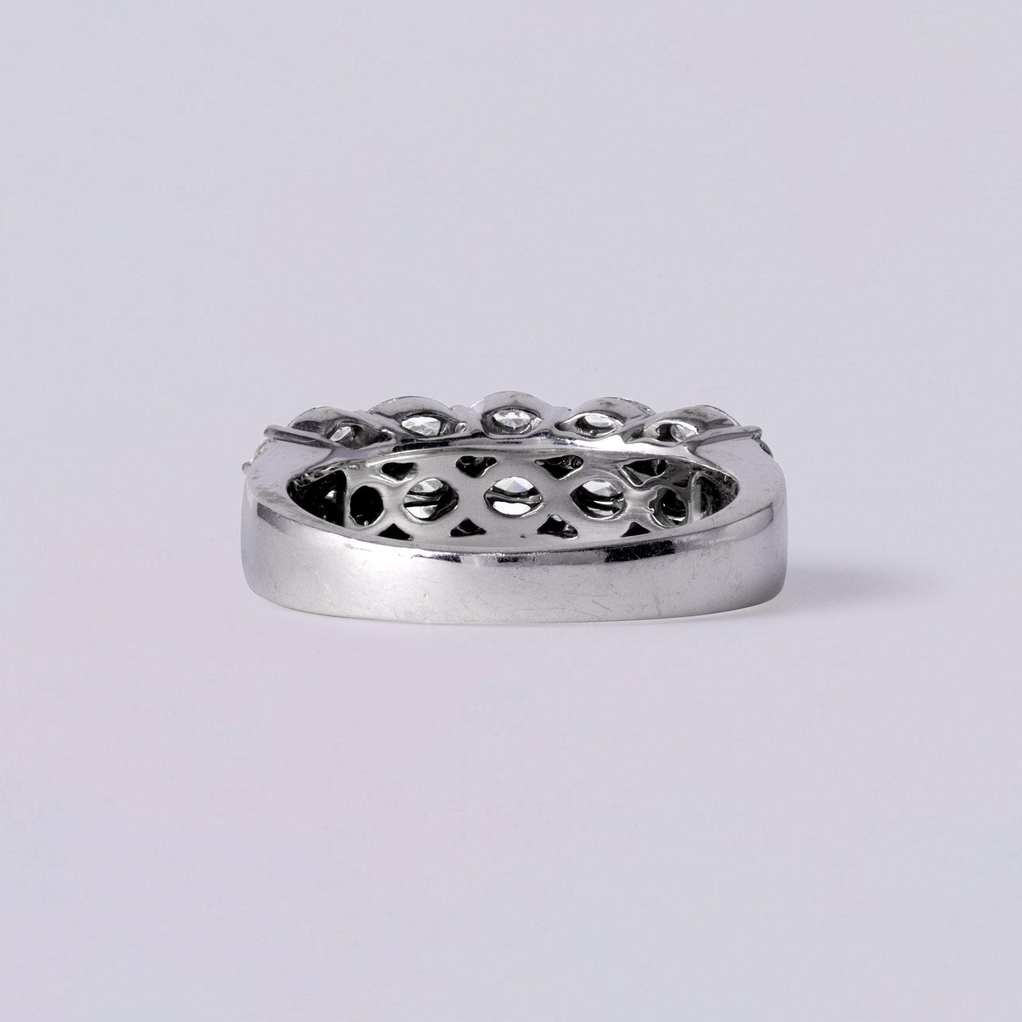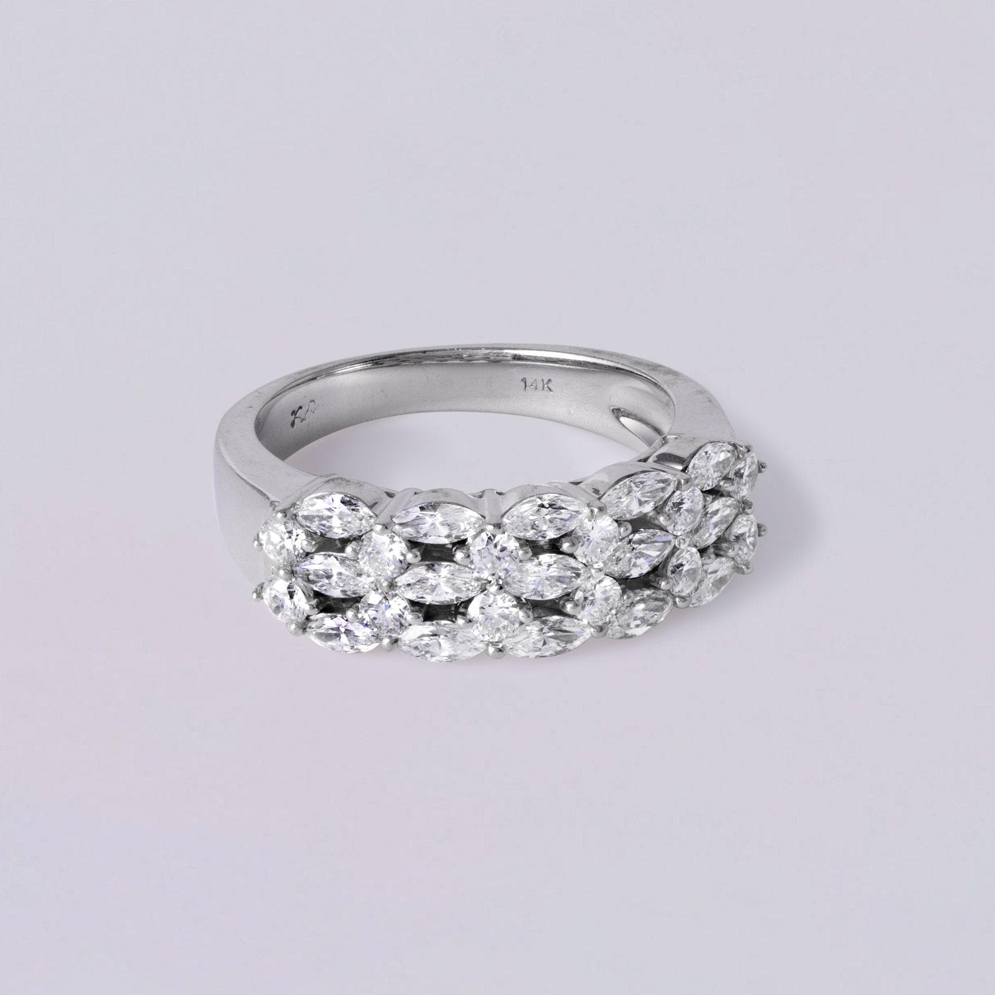 Stunning 3 Row Marquise and Round Brilliant Diamond Ring Band 14K White Gold