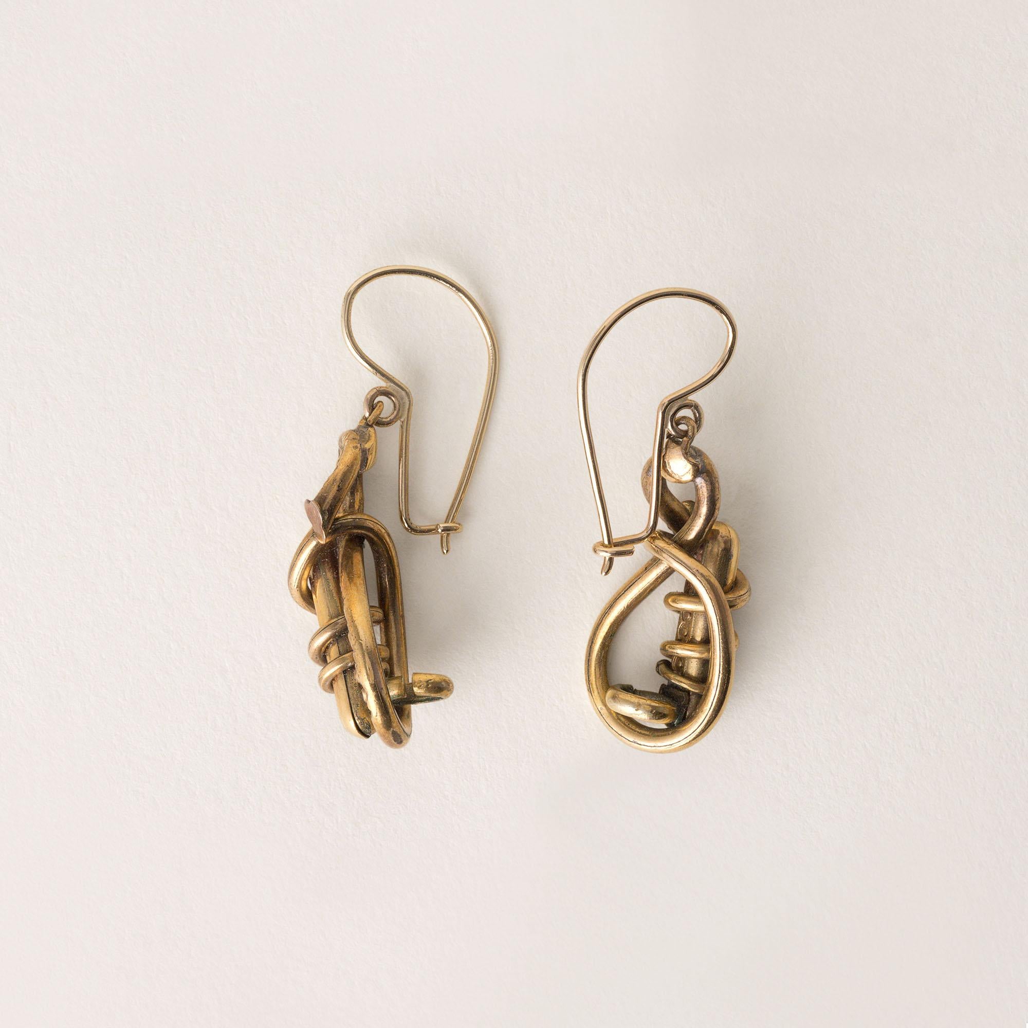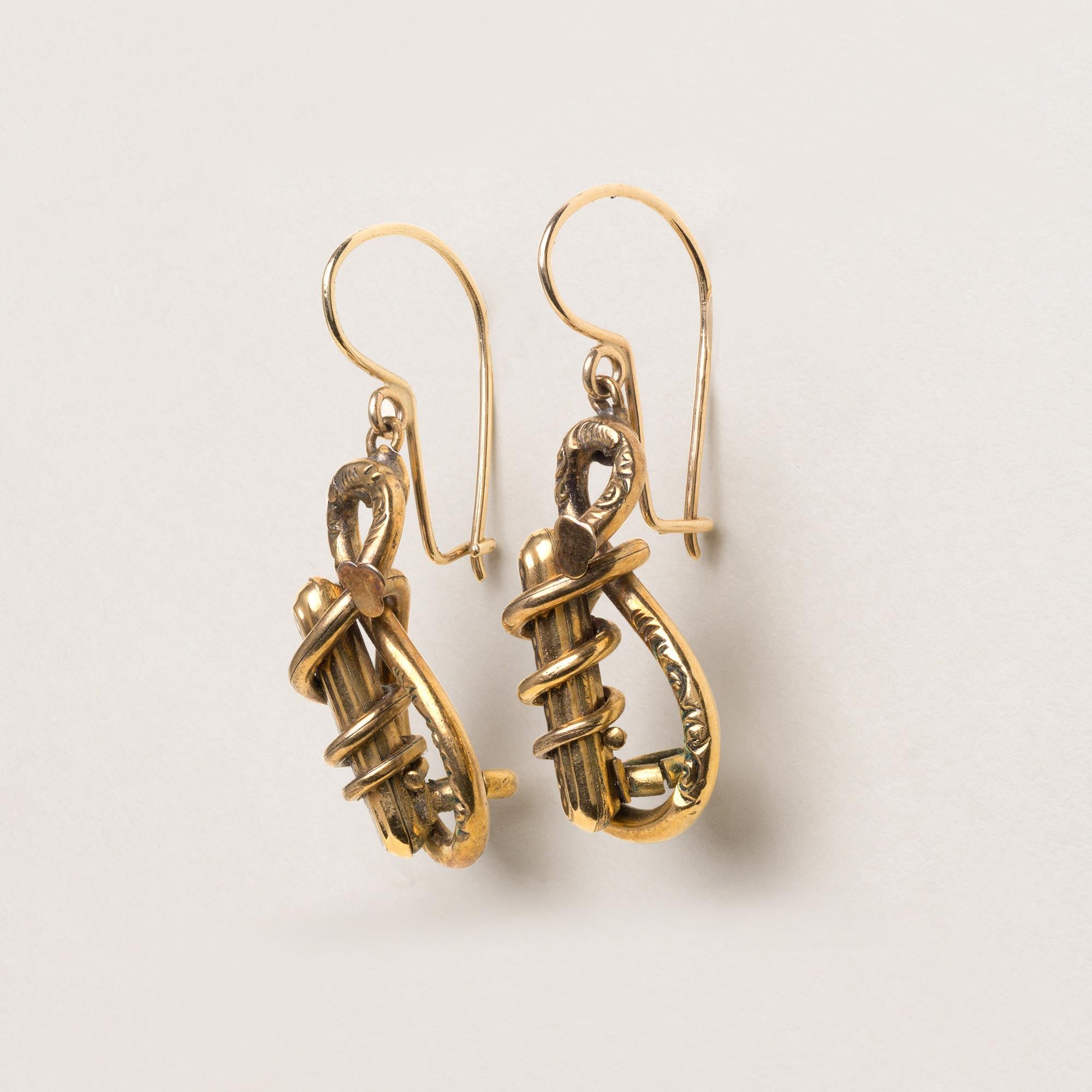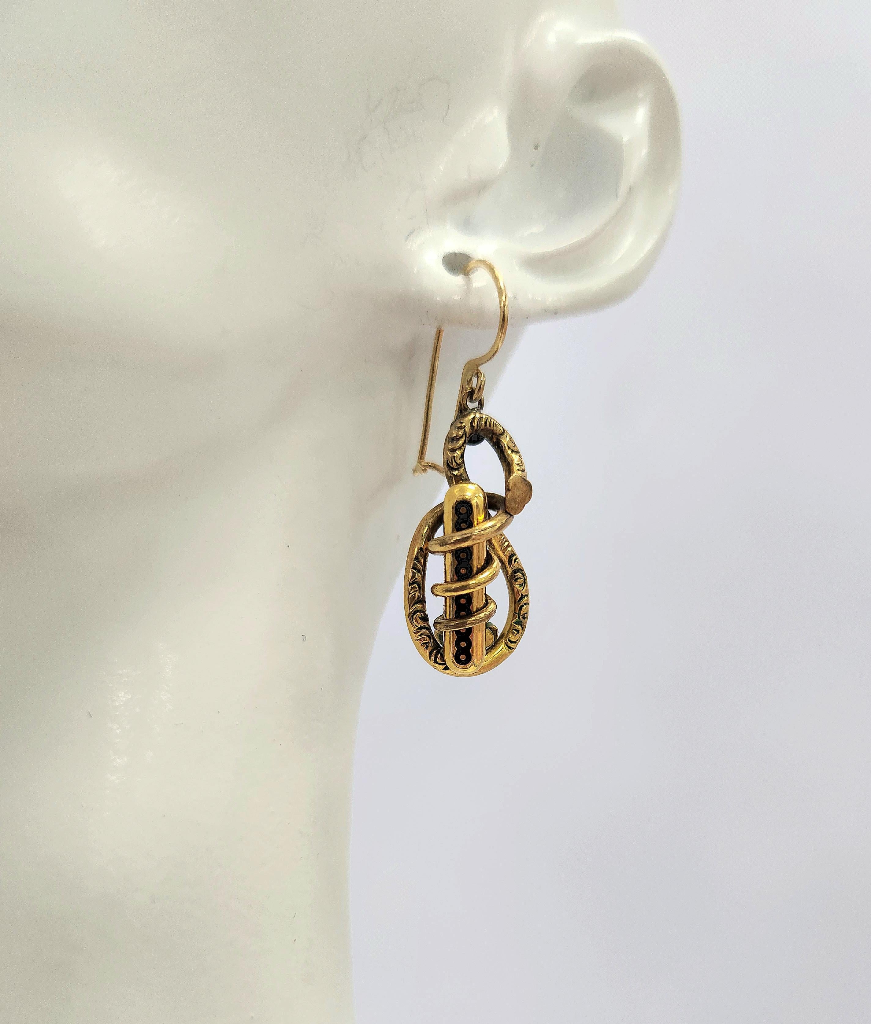 Victorian hollow gold enamel dangle earrings