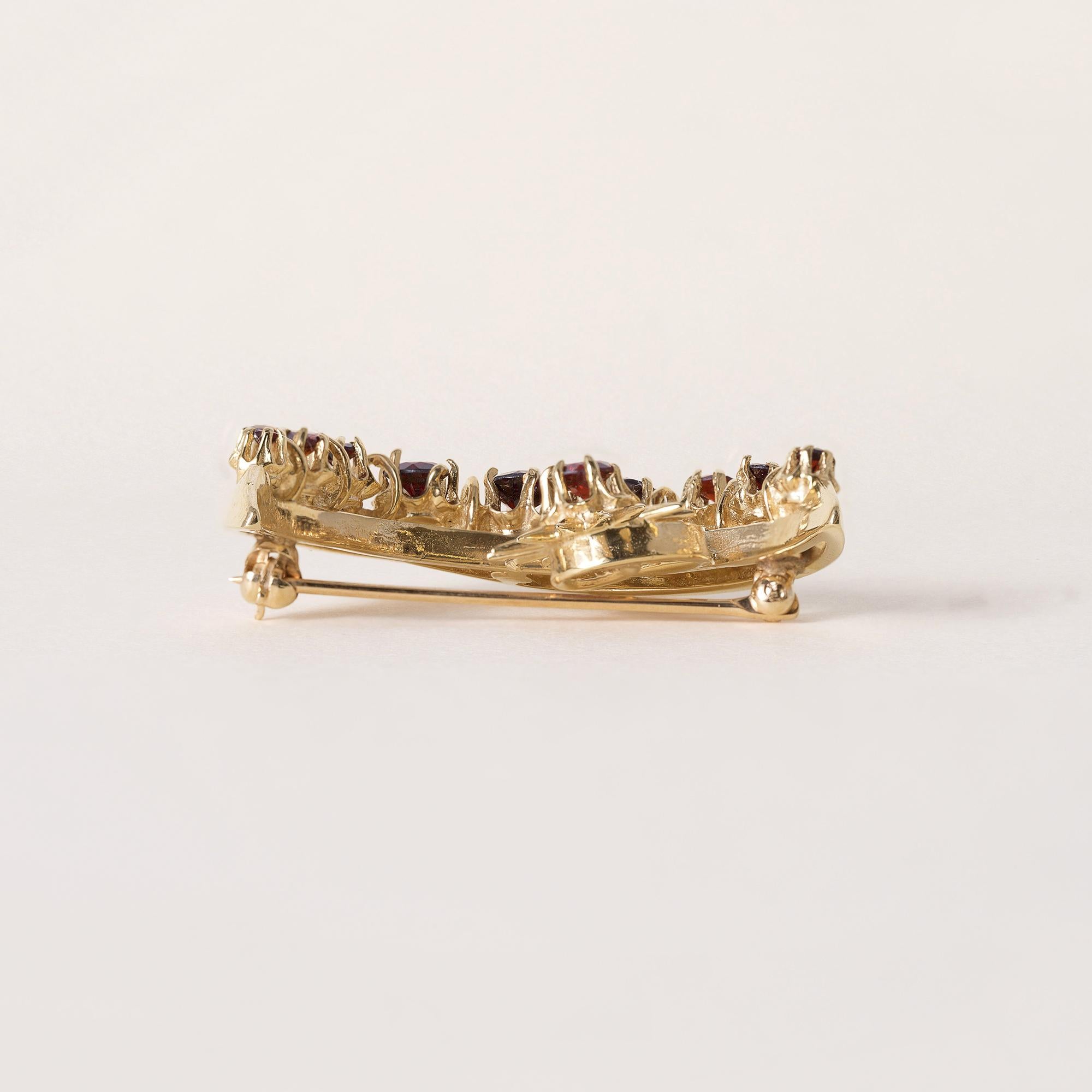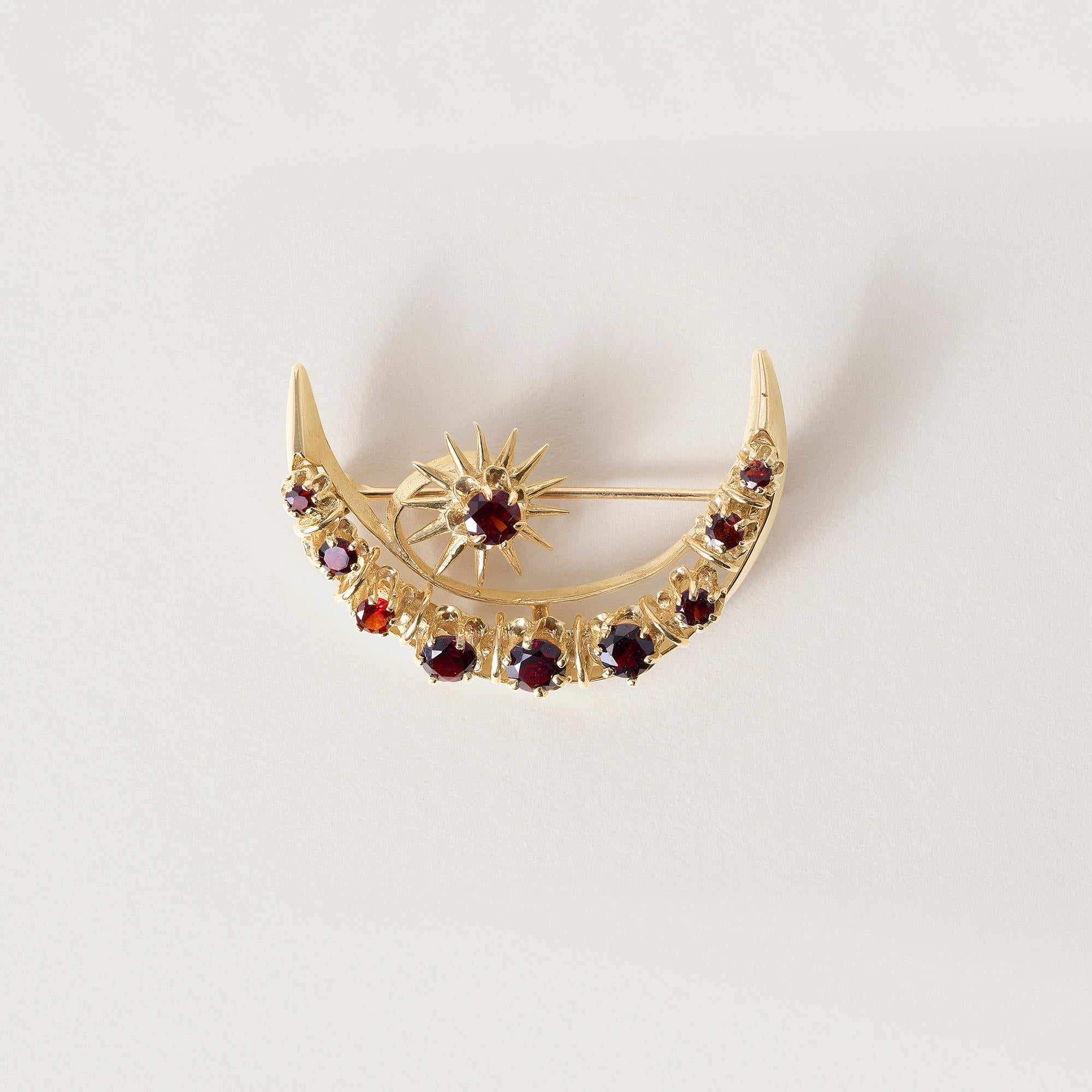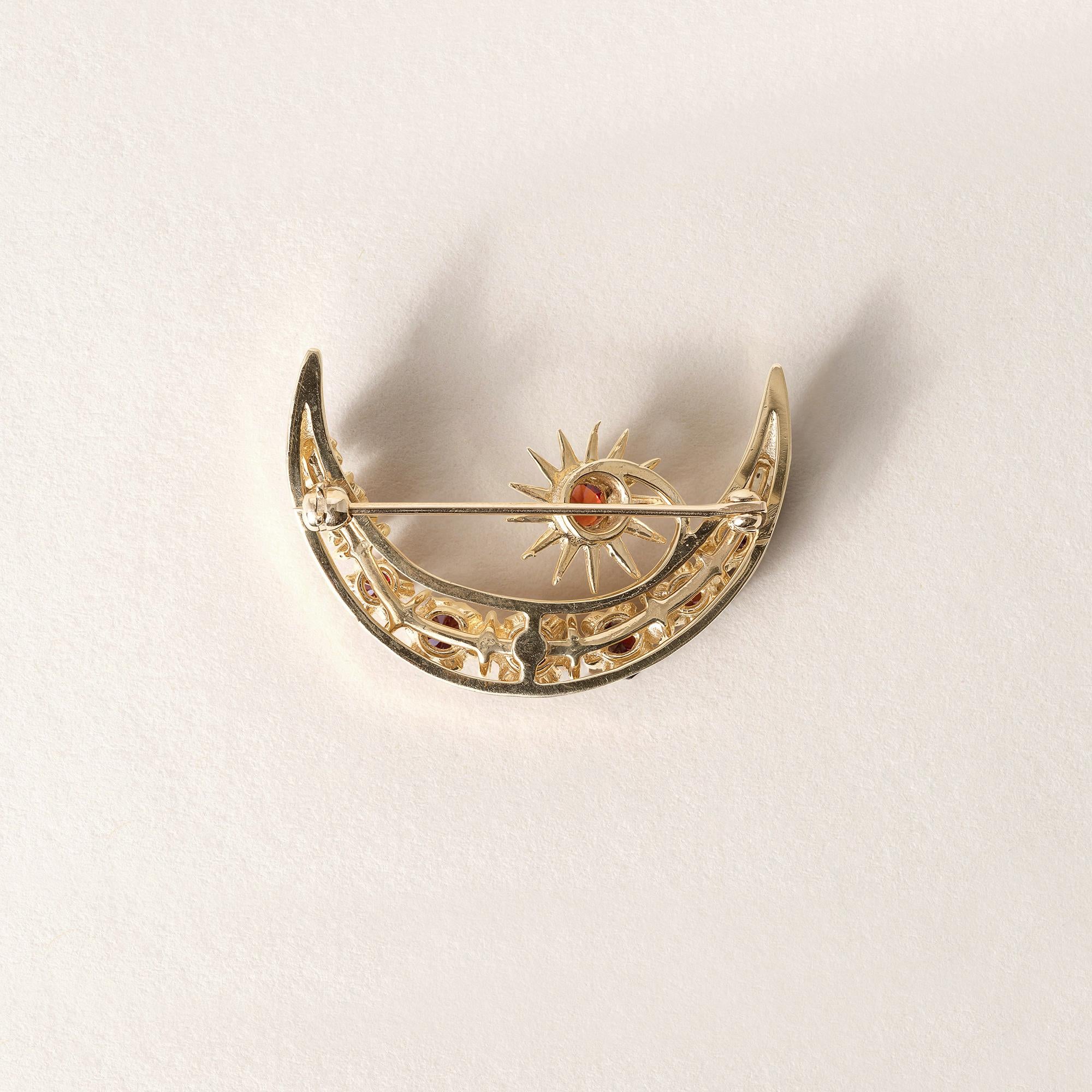 Vintage 14K Gold Crescent Moon and Star Garnet Brooch