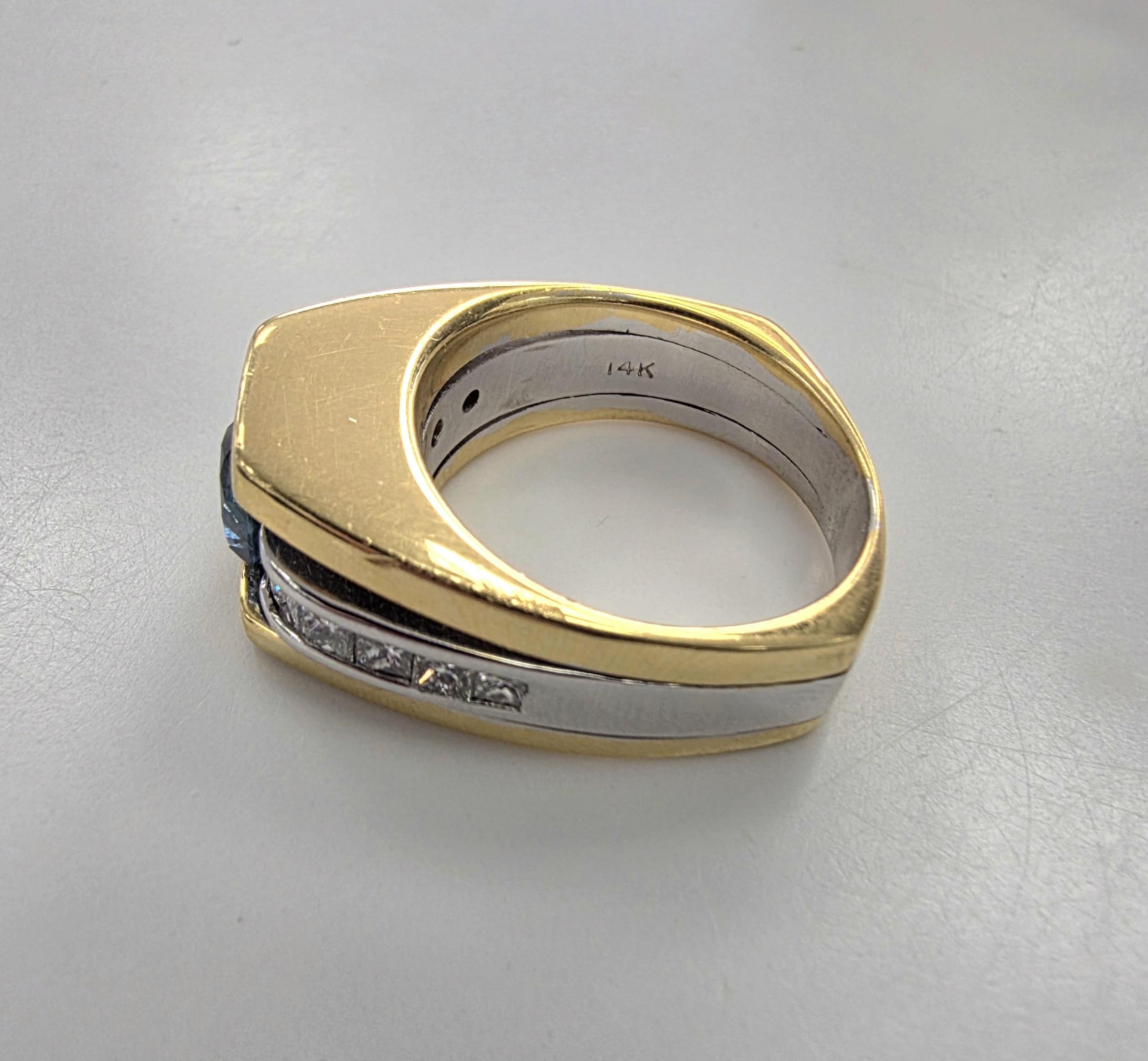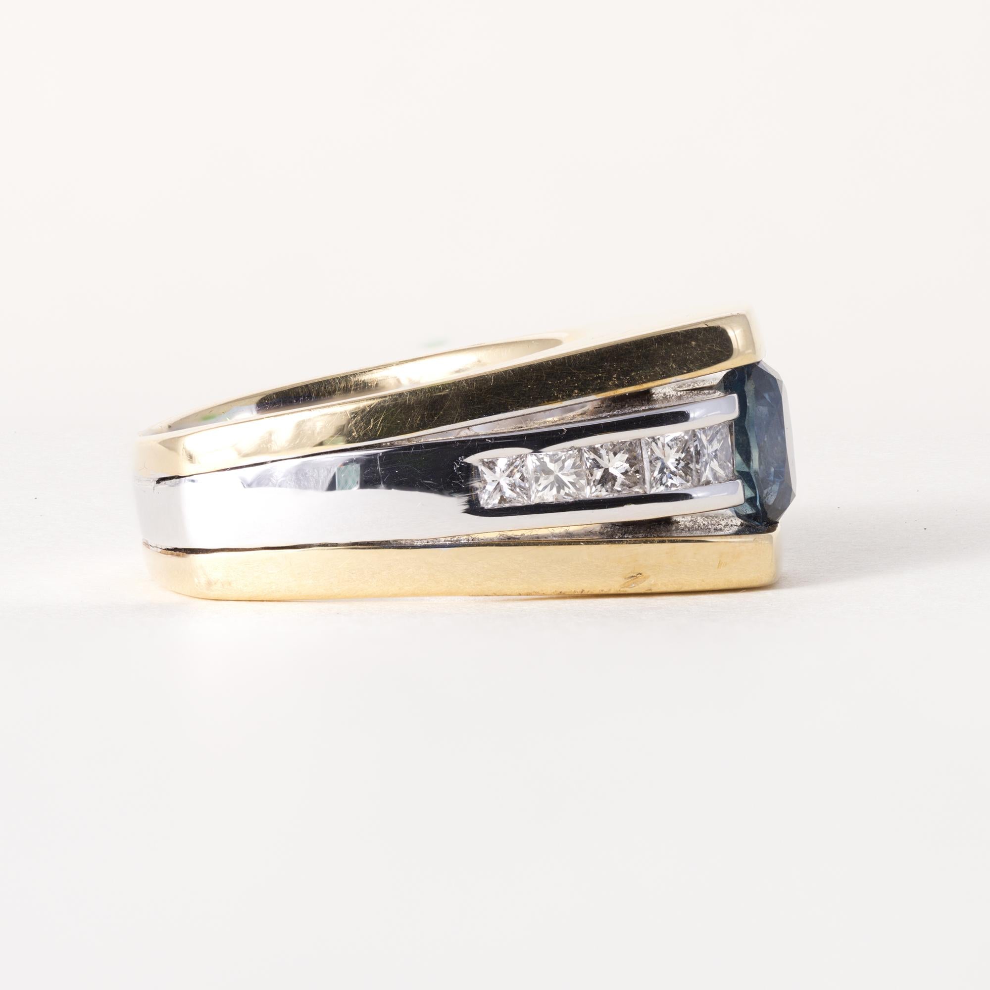 Vintage 14K Gold 1.35 Carat Montana Sapphire and Princess Cut Diamond Ring