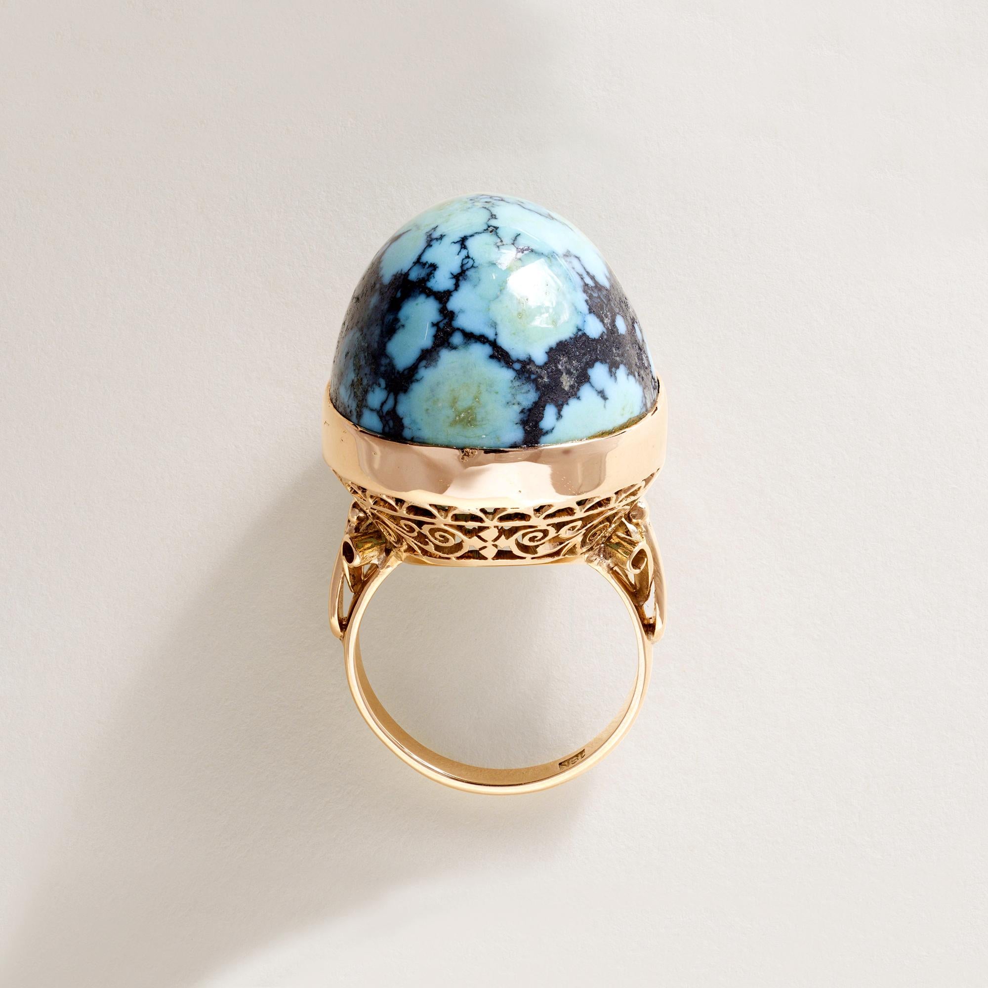 Vintage 18K Rose Gold 20.88 Carat Turquoise Dome Cocktail Ring