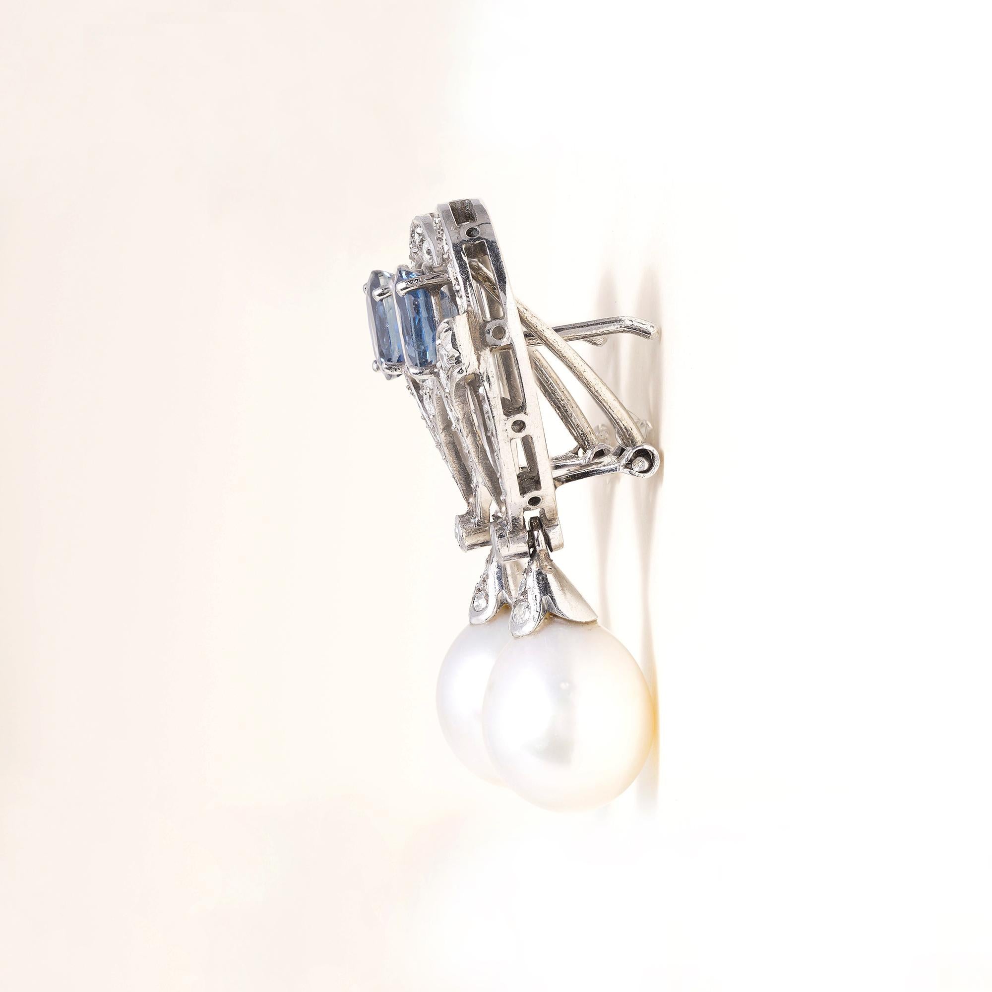 Vintage 18K White Gold Sapphire Diamond and Pearl Drop Earrings