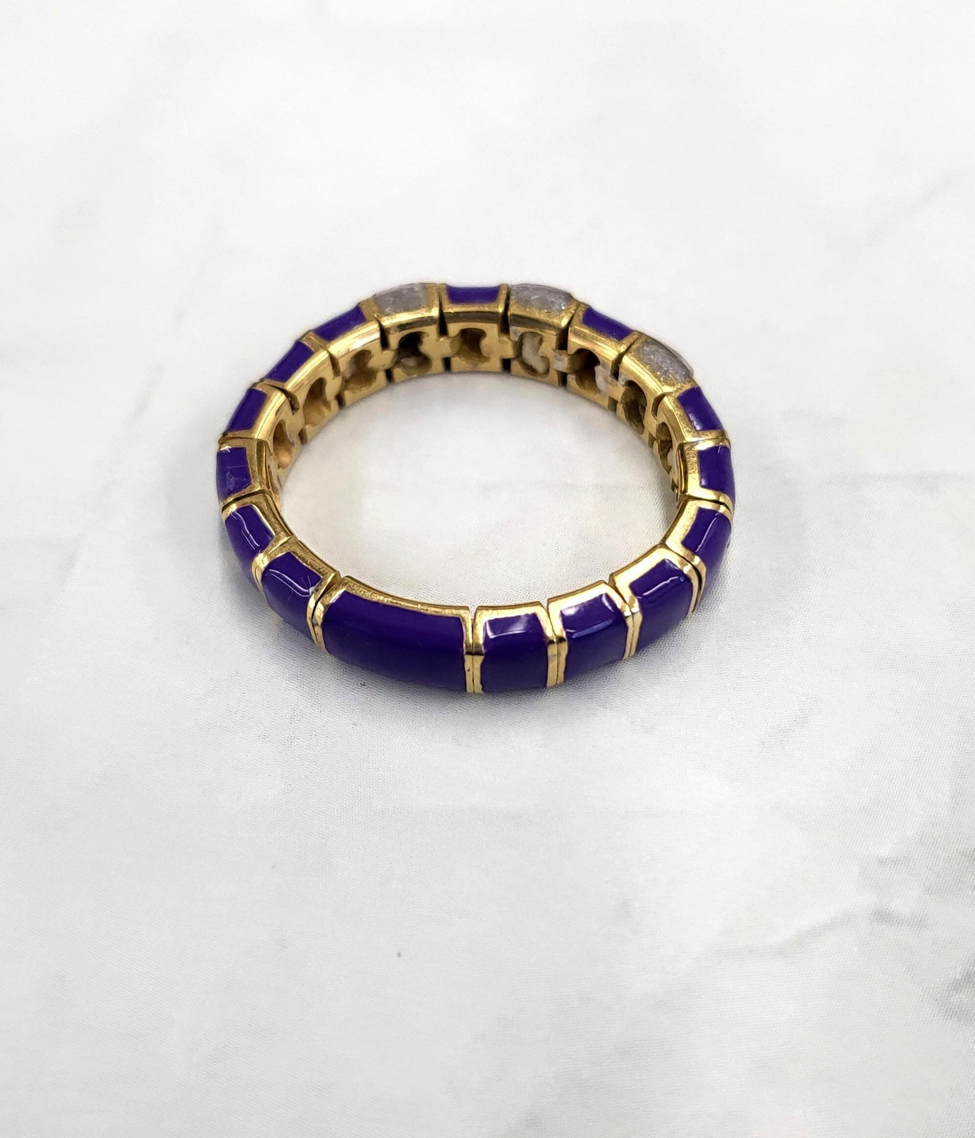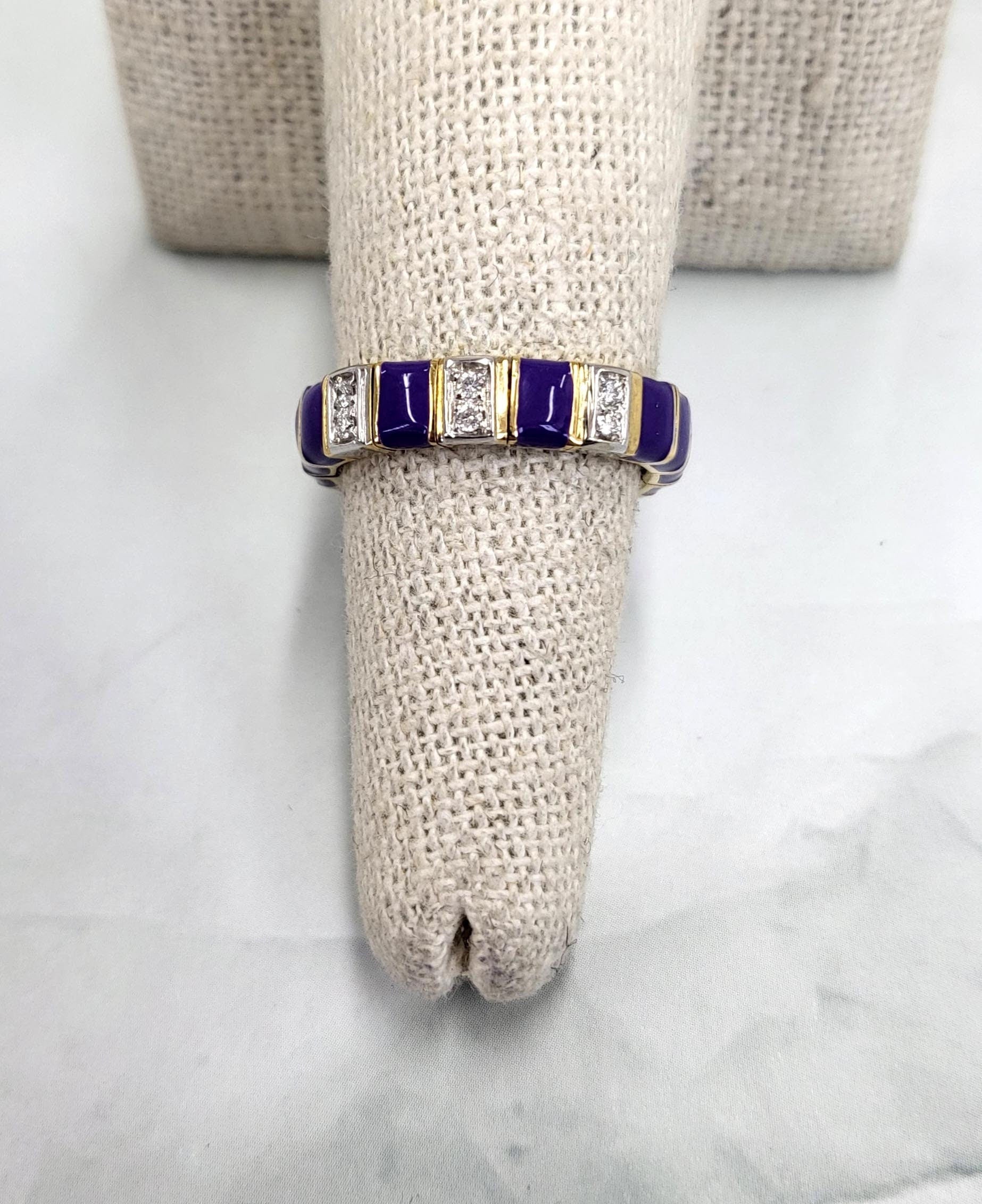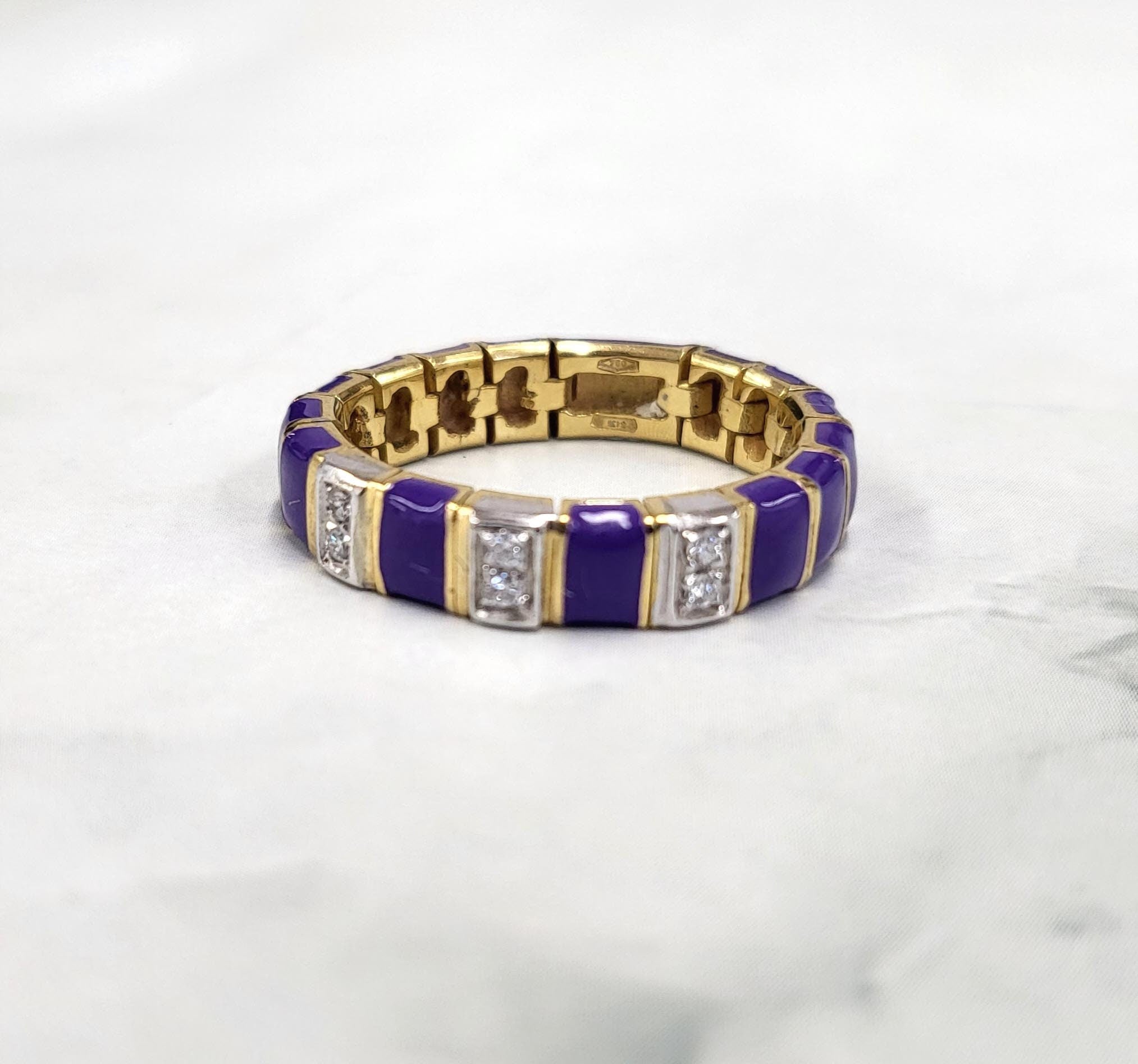 Vintage Italian 18K Gold Mesh Band Ring with Purple Enamel & Diamonds