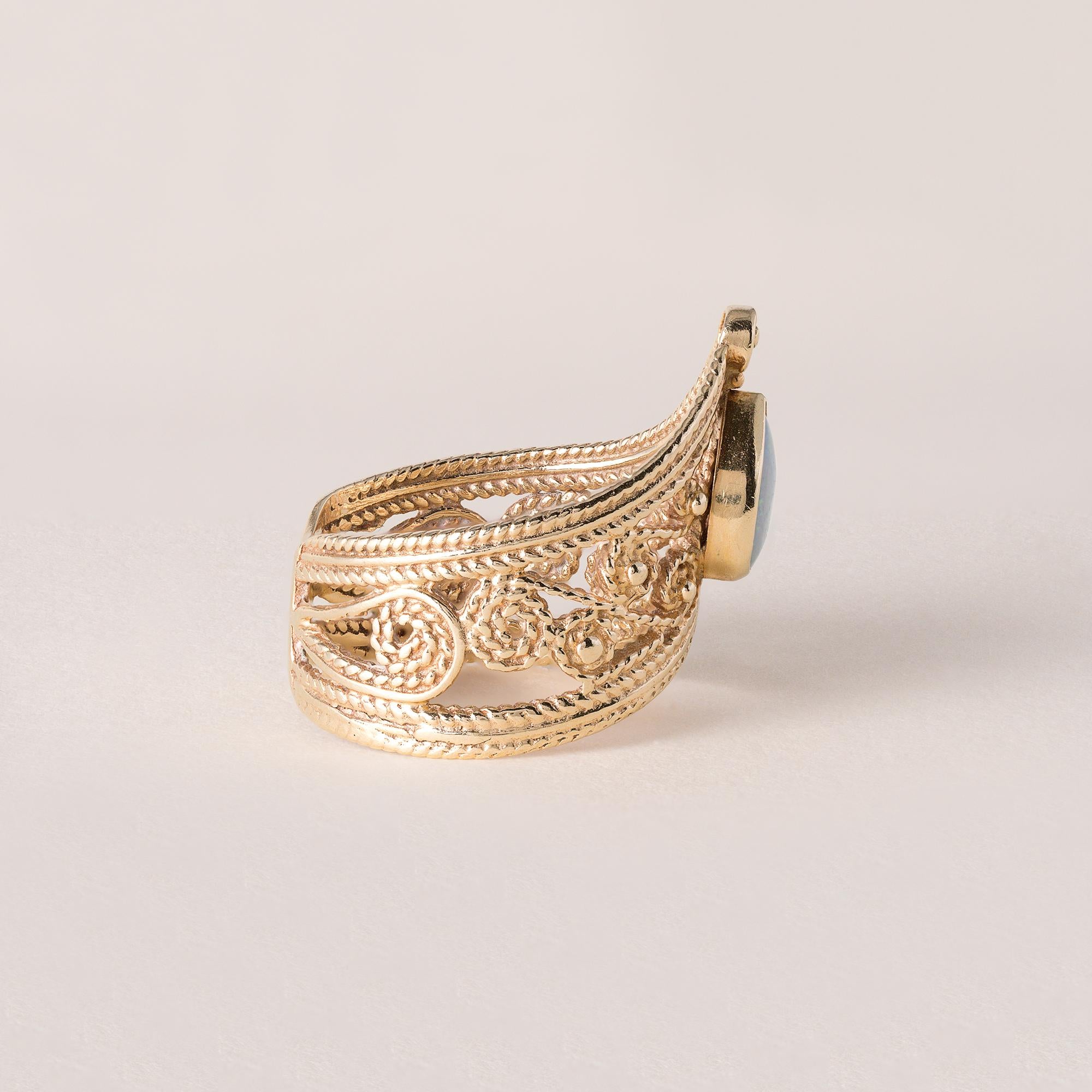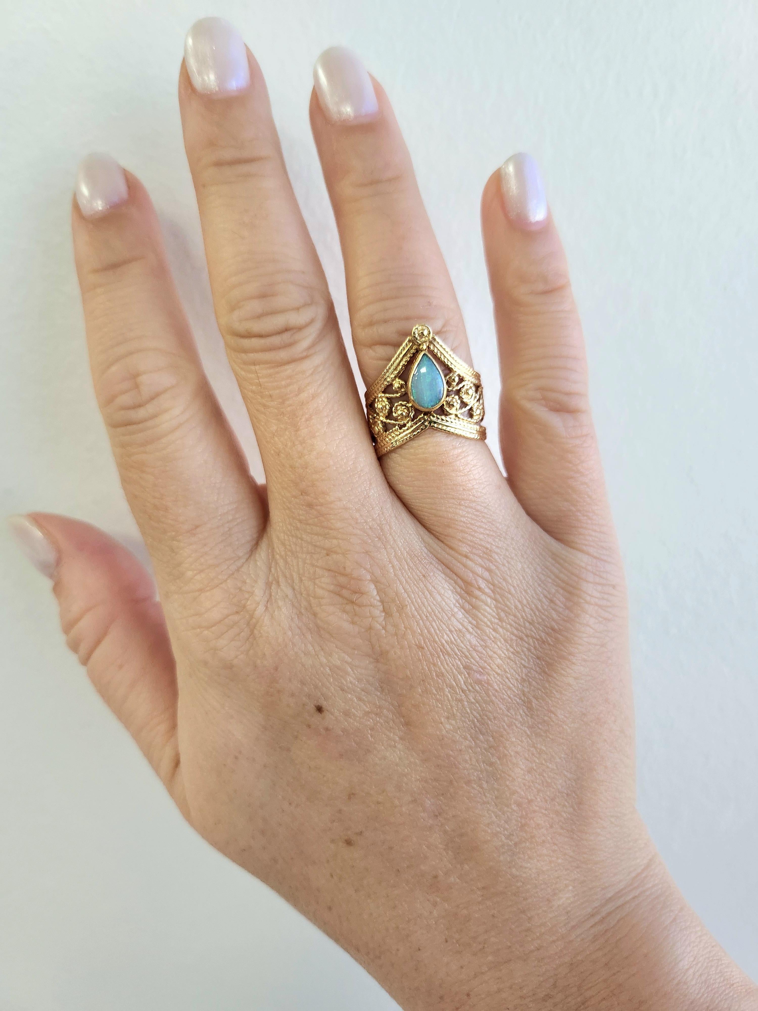 Vintage Opal Pear Shape Princess Crown Ring 12K Yellow Gold