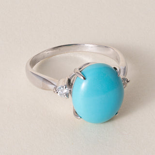Vintage 18K White Gold Sleeping Beauty Turquoise Ring with Diamond Accents