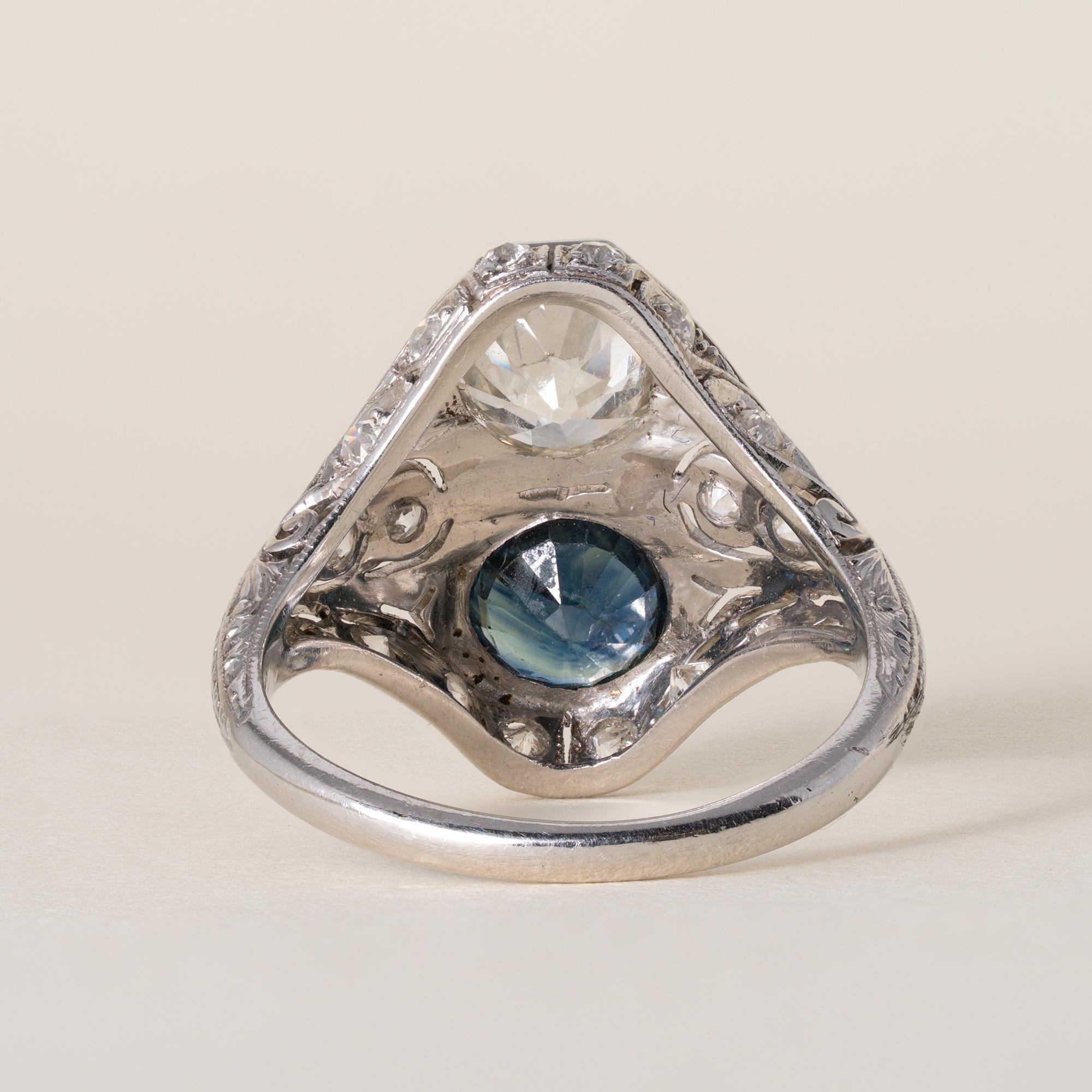 Antique Art Deco J.E. Caldwell Platinum Diamond & Sapphire Ring | Circa 1920s