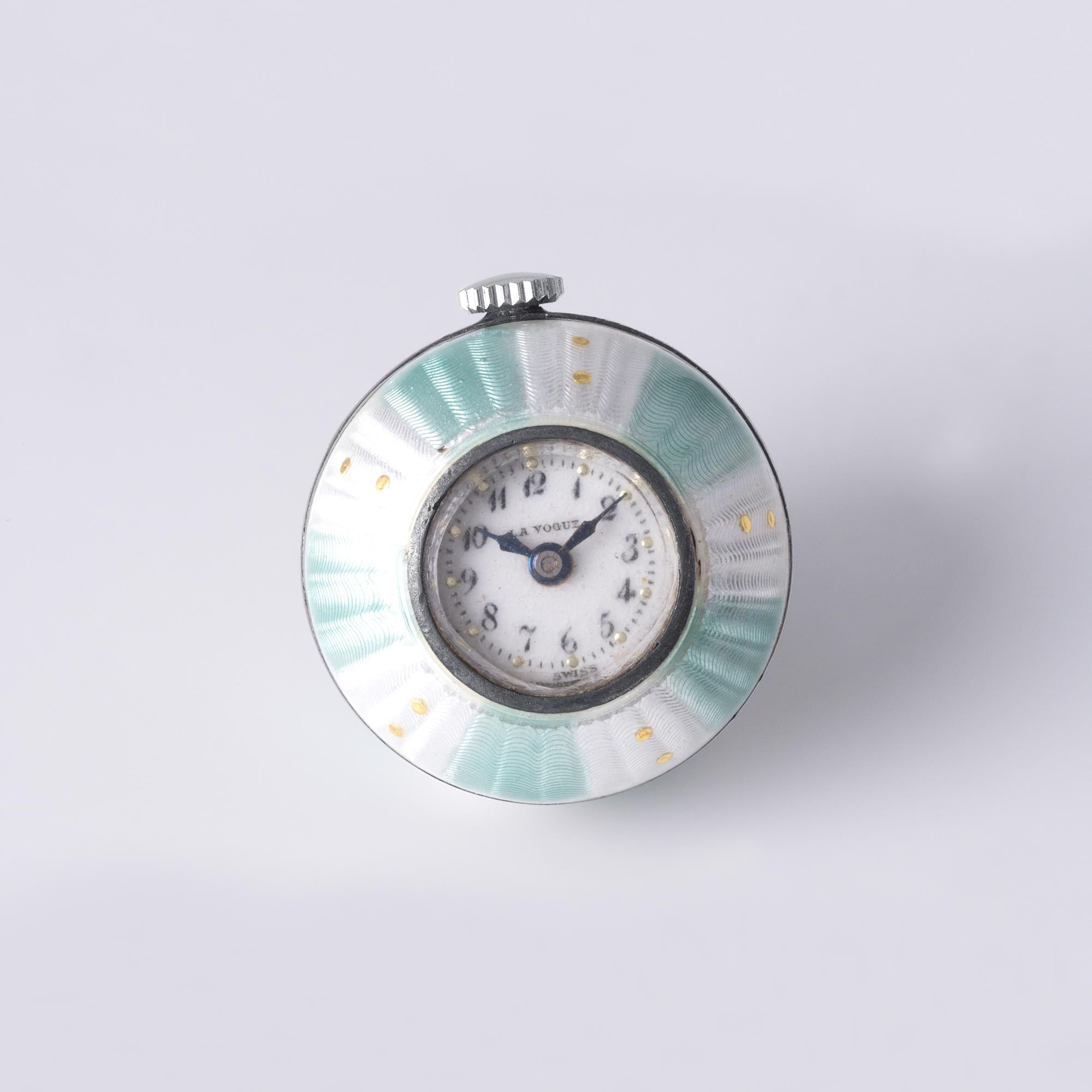 Antique French Silver La Vogue Green Enamel Clock Pendant
