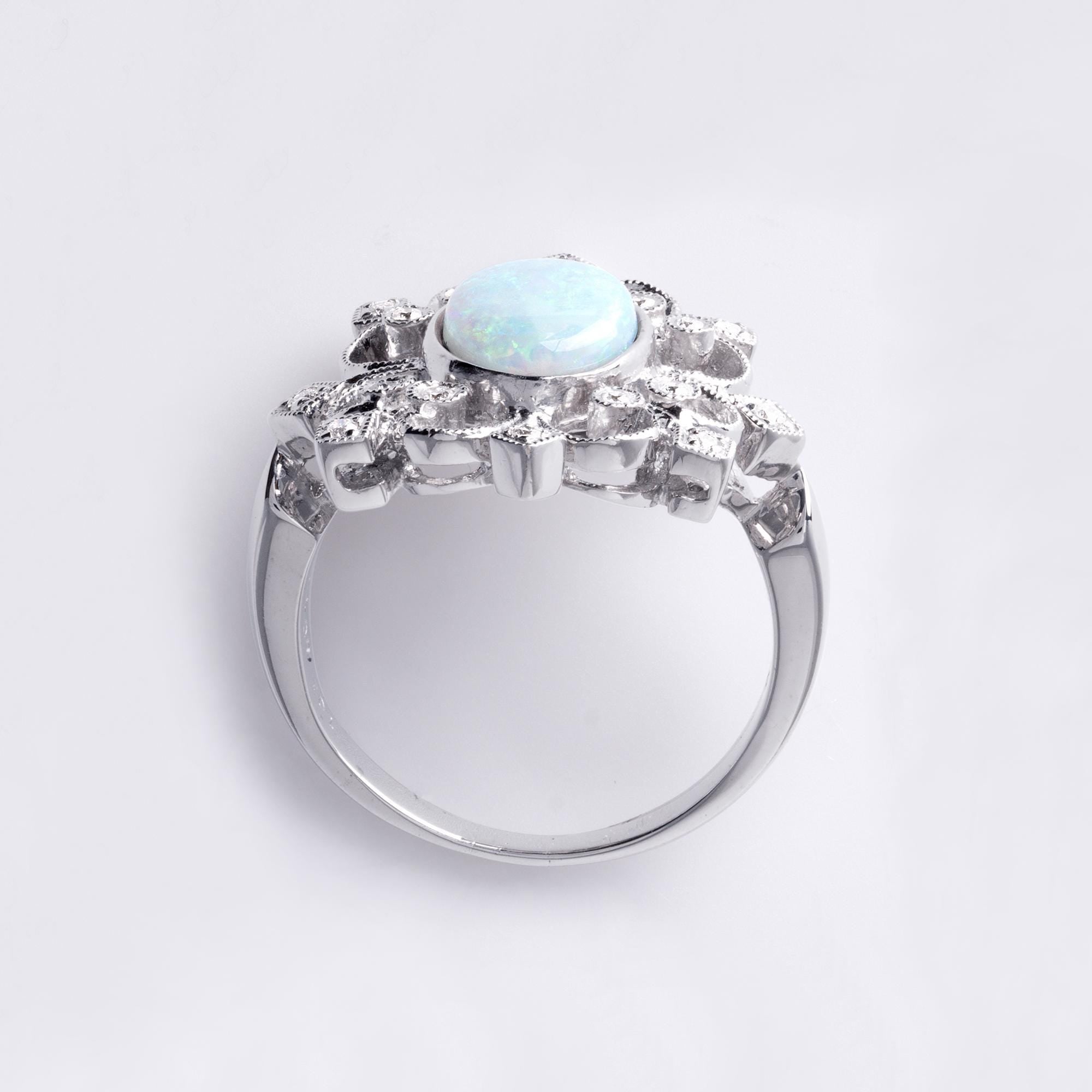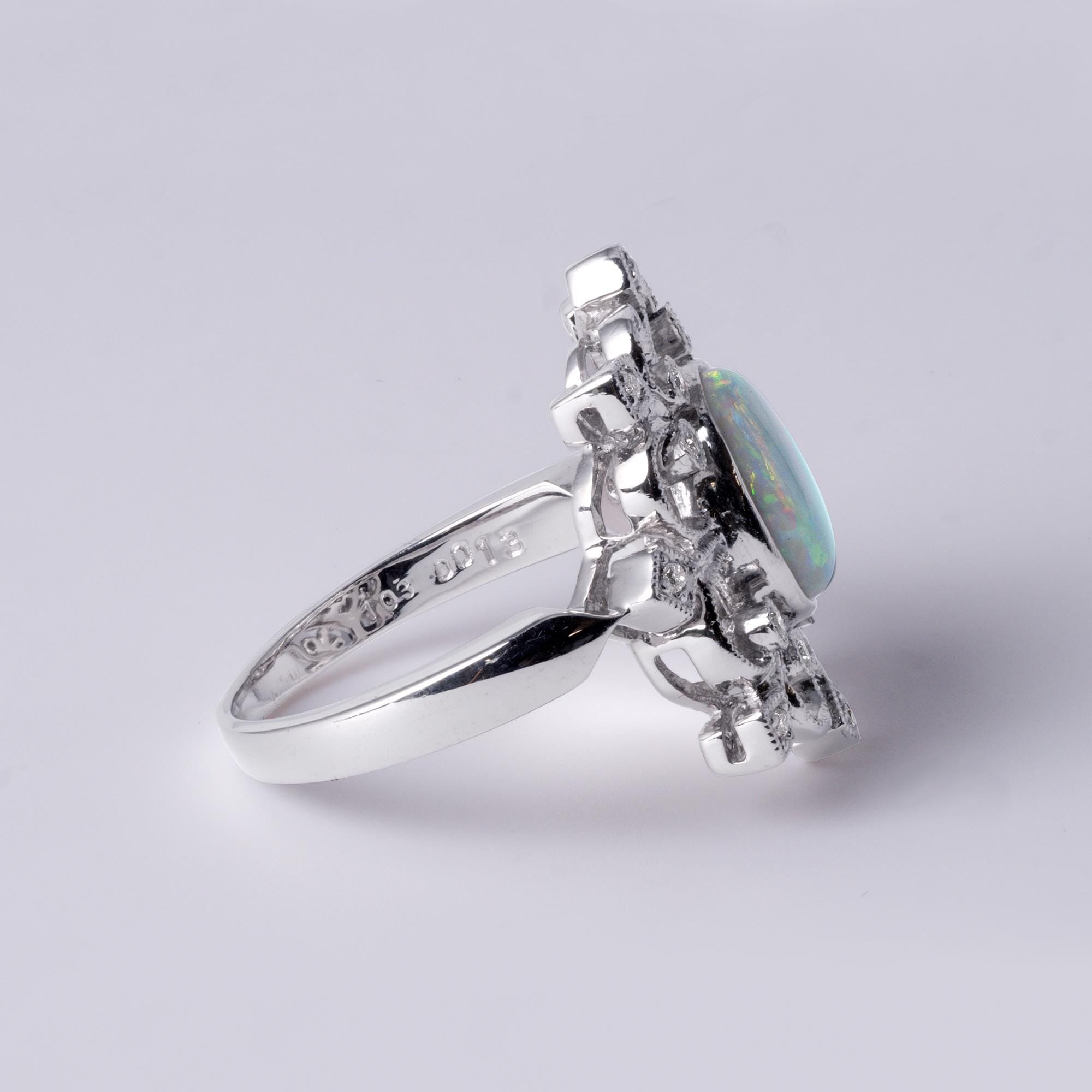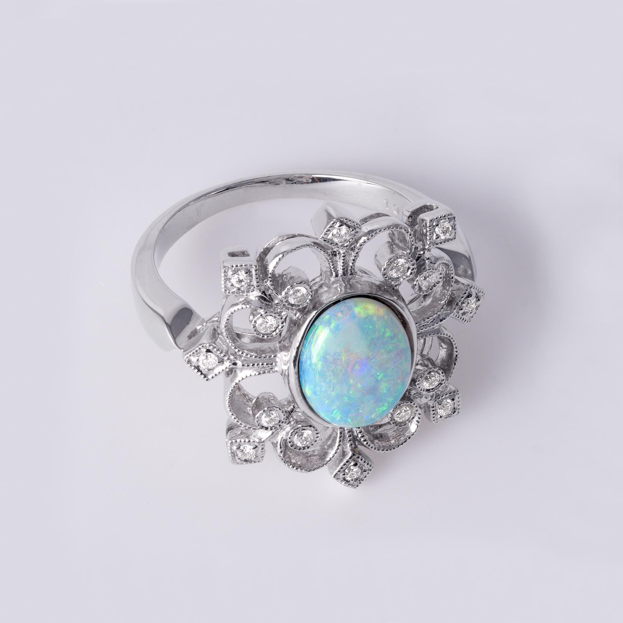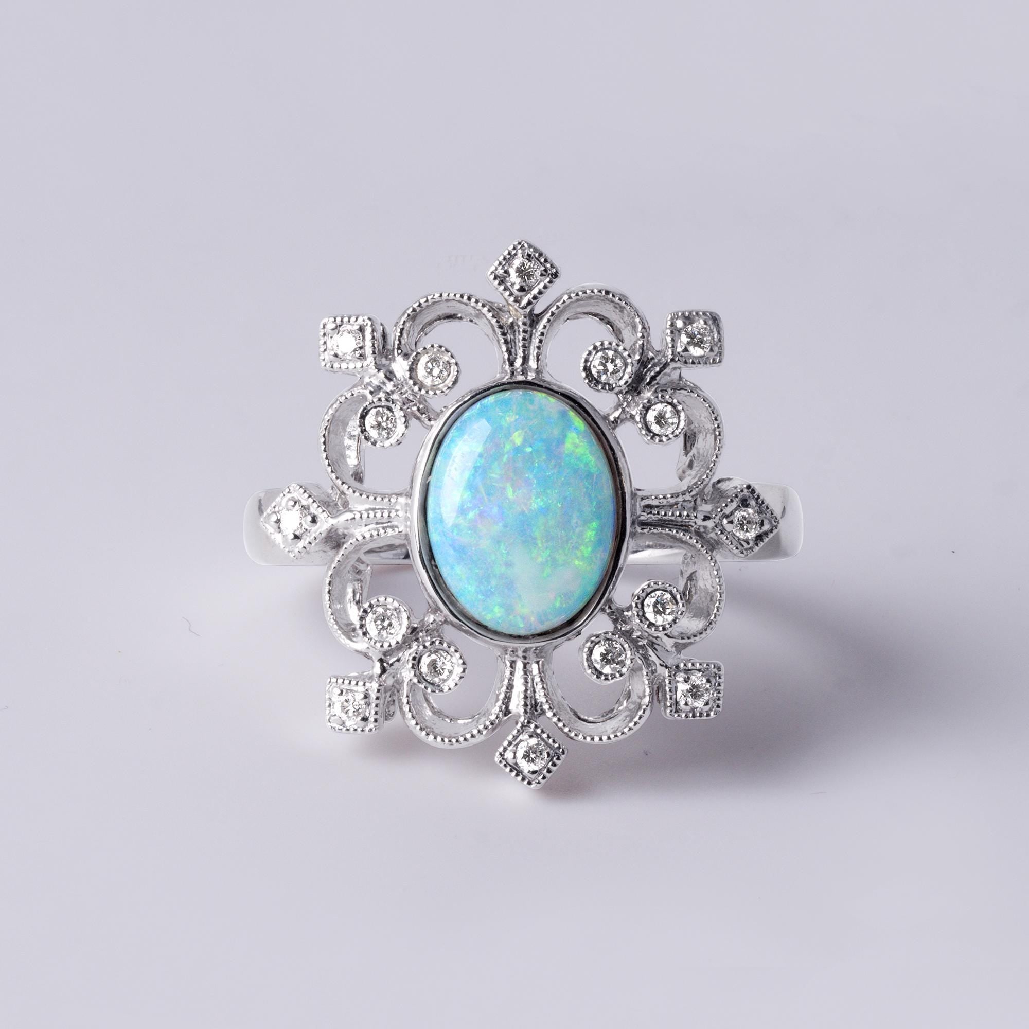 18K White Gold Australian Opal & Diamond Filigree Ring Filigree