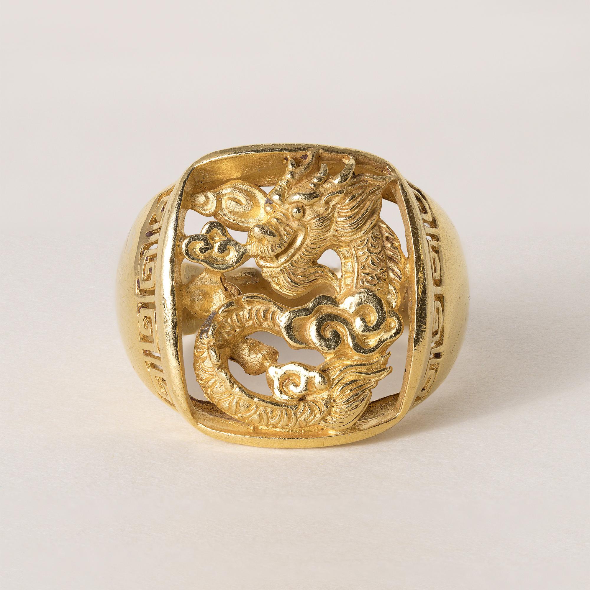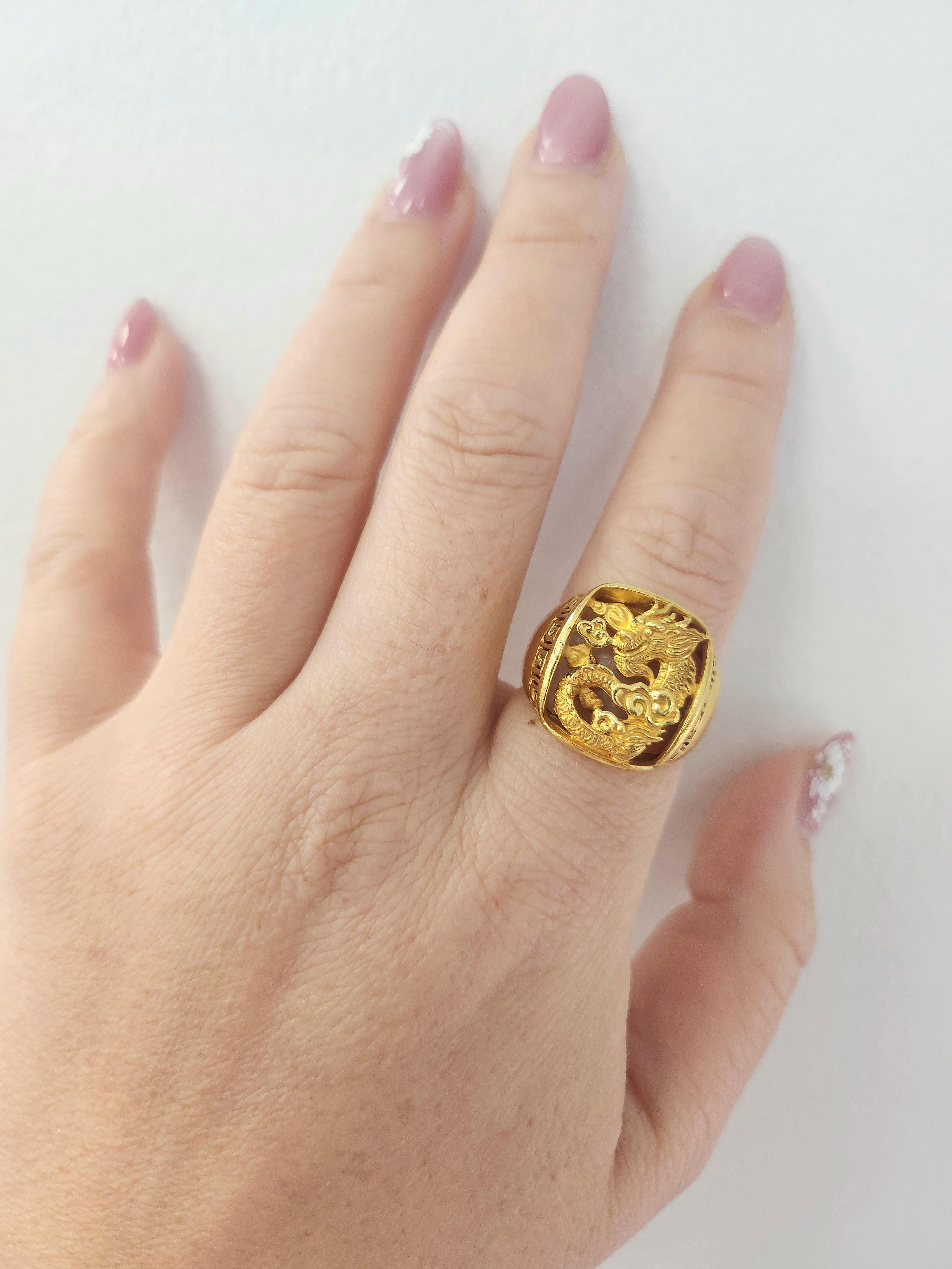 Vintage 24K Solid Gold Lucky Dragon Ring